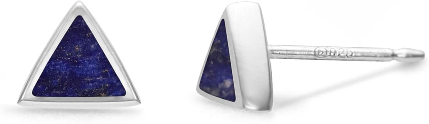 Boma Sterling Silver Triangle Stone Inlay Stud Earrings - Simple and simply stylish, these triangle earrings set with a beautiful stone are suitable to adorn any outfit. Crafted in sterling silver with sterling silver posts and surgical steel ear backs. Boma Jewelry: Guaranteed for Life.