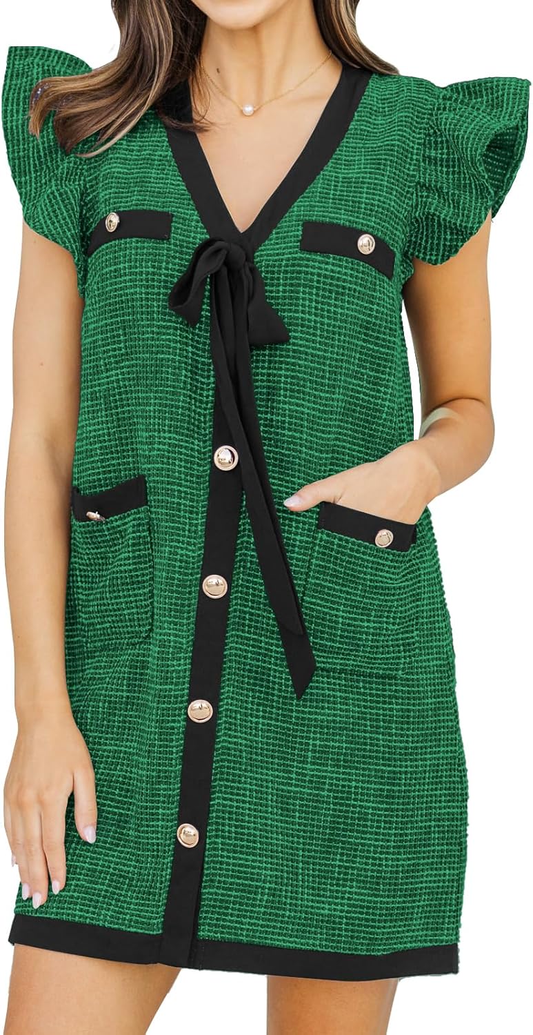 Upgrade your style with Bonnorth womens mini tweed dress! With a stylish and classic silhouette, this elegant womens shift dress is not only suitable for parties and club events, but also for work and business occasions, showing your charming feminine charm easily. The delicate bow tie detail with color block design that highlights the beauty of the overall design, making it easy to stand out and create an eye-catching look while maintaining a sophisticated and playful.