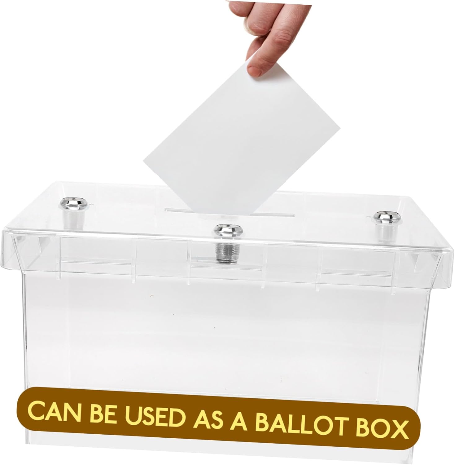 Package Include 1 × Acrylic Box with and 4 Keys Features -Material:Acrylic, stainless steel -Product Info:Wedding shoe box with lock -Color:Transparent -Size:31.00X21.00X18.50cm/12.18X8.25X7.27in -This wedding party cards box allows your guests to put down cards and notes of wishes wedding money boxes. -Also, the clear box with locks and keys can be used for wedding shoes boxes for shoes. -Large capacity space, it can store more cards. Better decorate your wedding scene card wedding boxes. -Can be applied to hold cards, money, envelopes, postcard, photos and small small lock boxes. -Not only a cards box for collecting cards, but also can be used as a keepsake box to store photos, etc key lock boxes.Goods Informationboxes for shoes Are you still concerned about the safety of the cards at your wedding or event? Are you looking for a clear box that can be used to hide the wedding shoes? Then our clear acrylic box with locks may help you