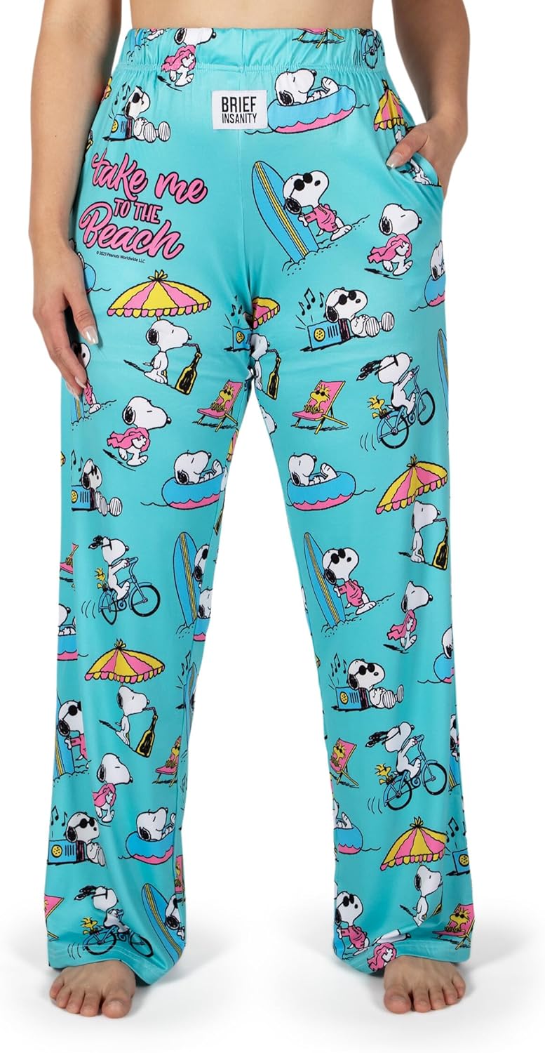 Collections Etc Unisex Snoopy Take Me To The Beach Lounge Pants Multi-Colored X-LargeDescriptionFans of the classic PEANUTS gang will love relaxing in these super comfortable pants that feature Snoopy and read, "Take Me To The Beach". With side seam pockets and a loose fit, they're luxuriously soft with an elasticized drawstring waistband for comfort. Machine wash. Polyester and spandex; imported. Choose: Unisex M(32-34; 31"L inseam), L(36-38; 31"L inseam), XL(40-42; 32"L inseam) or XXL(44; 33"L inseam).Material TypeCotton