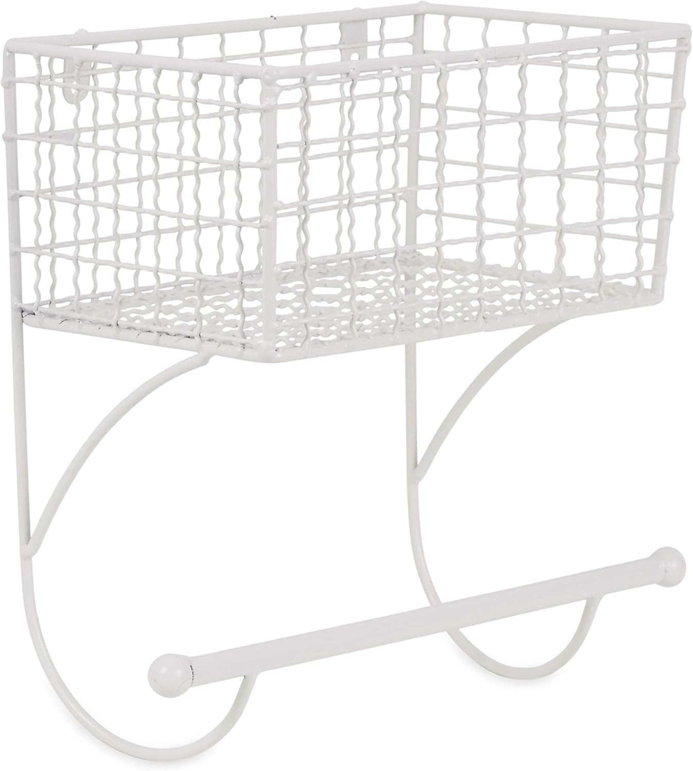 Crafted of antiqued finish “chicken coop” metal wire for a vintage look, and a sturdy frame, this wall mount shelf will be a great addition to your interior. Stylishly house little handy items for easy access! The towel bar would also come in handy when dinner preparation is fully on. With their rustic appeal, this shelf would make a charming housewarming gift!