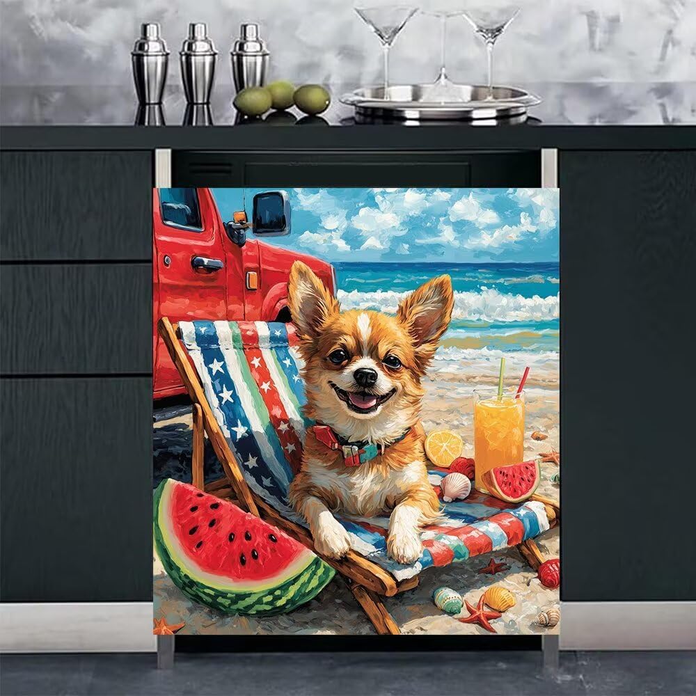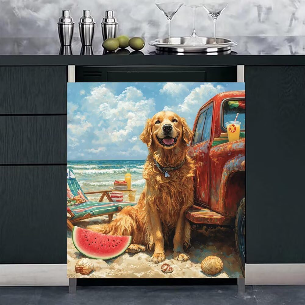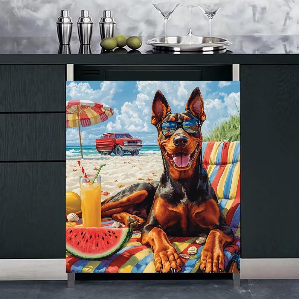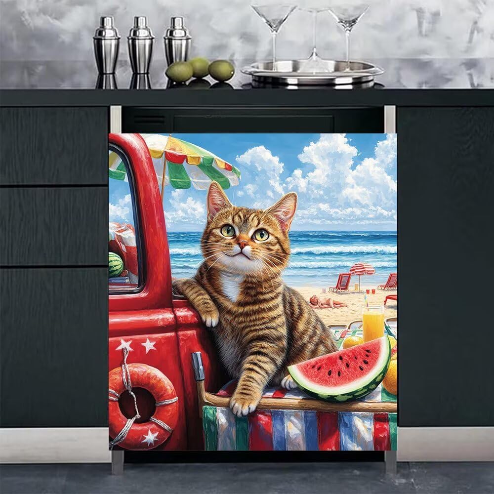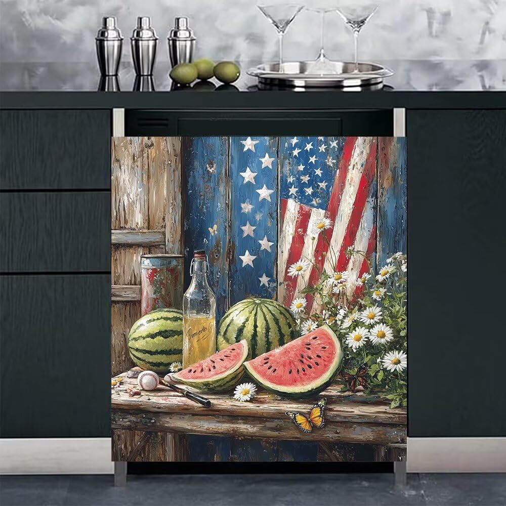 Transform your kitchen with this charming magnetic dishwasher cover featuring a delightful summer scene. Measuring 23"W x 26"H, this decorative panel showcases a rustic composition with a mason jar of refreshing lemonade, juicy watermelon slices, cheerful daisies, and graceful monarch butterflies against a weathered barn backdrop. The durable waterproof vinyl construction with magnetic backing effectively conceals any scratches, stains, or dents on your dishwasher while adding artistic flair. Installation is a breeze - simply unroll and position the cover on your dishwasher front. The versatile design can be trimmed with scissors or a box cutter for a custom fit. Its matte finish and neutral pattern complement various kitchen styles while maintaining a sophisticated look. The cover is easy to clean with a simple wipe and removes cleanly without leaving residue when you're ready for a change. Perfect for standard dishwasher fronts, this magnetic cover offers both practical coverage and decorative appeal, instantly upgrading your kitchen's appearance with its timeless country charm.Feature:Easily trim oil-proof and waterproof Hide scratches, dents or other unsightly marksThe surface is smooth, environmentally friendly and easy to remove without sticky residueNoted:1: Please allow slight differences between the color displayed on the computer and the actual color 2: This dishwasher magnetic sticker can only be used on iron panels, not on stainless steel dishwashers