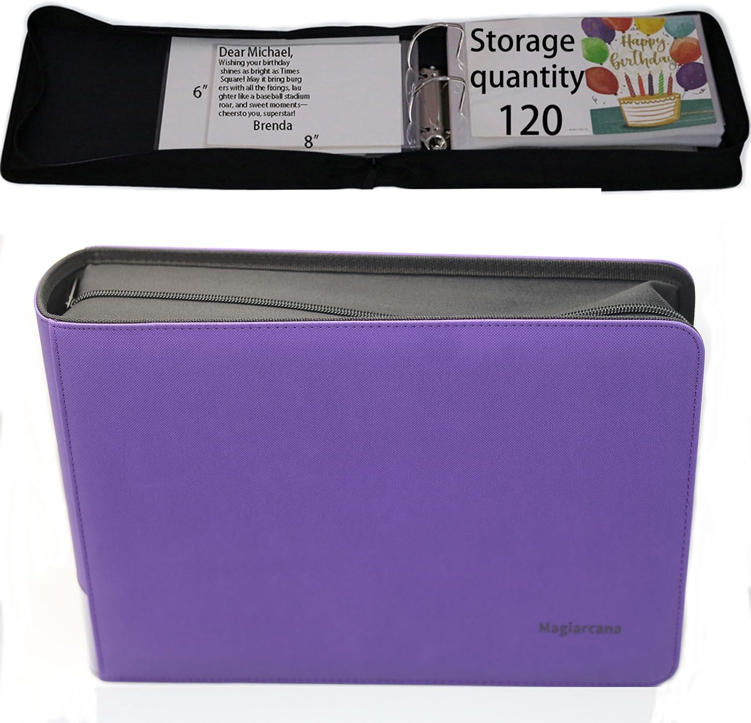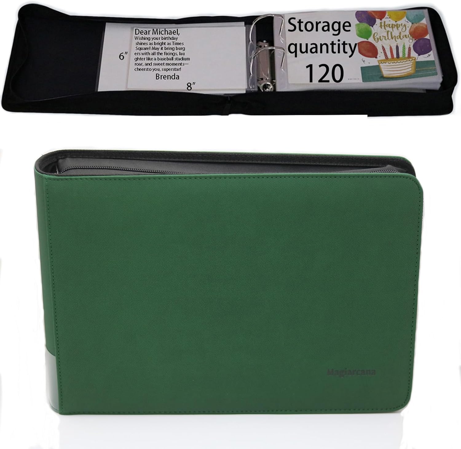 Magiarcana greeting card storage box and binder storage display; Christmas card album, birthday card holder, suitable for wedding cards, index cards, postcards 1, greeting card holder; Suitable for 5x7 inch, 4x6 inch, 3x5 inch greeting cards 2. Compatible with Christmas card storage, counting birthday cards, funeral cards, and wedding commemorative cards, including 120 greeting card sleeves 3. The card binder format is convenient for adding or deleting pages, making it easy for you to manage greeting cards in the future 4. The greeting card binder keepsake protects the card from dust and damage, while making it easy to flip through to commemorate