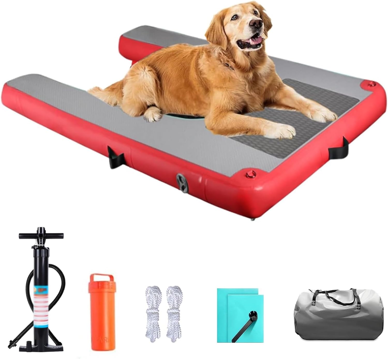 Still worried about your dog's difficulty in getting to shore after playing in the water in the summerWith MZZKFC inflatable dog ramp, these are not a matterThe love you give to your dog is hidden in these small details. Whether you are traveling or going to a friend's pool party, easy to carry, happy to go! Every time your dog plays in the water will become a good memoryHurry up and prepare for your babySpecification :Product Name: Inflatable Dog Climbing LadderMaterial: PVCSize: 150x100x10 cm (Customizable)Color: Green/ Blue/ Yellow/ Red/ BlackWeight: 8 kgLoad Capacity: 105 kgFoldable or Not: YesAccessories: Pump/ Storage Bag/ String/ Repair KitFeatures:1. PVC material dog pool ramp, can withstand frequent use and paw scratching, long service life2. The dog float is equipped with EVA anti-skid pads to prevent slipping and falling and protect your dog from climbing3. Underwater weighted net, so that the dog water ramp is not easy to shake, shift or fall over in the water, so that your dog can climb more stable4. Curved corners to prevent your dog from getting hurt5. The inflatable dog ramp can be inflated and deflated quickly, and the compact size after storage makes it easy to carry around6. No need for complicated tools and professional skills, follow the instructions to easily complete the floating dock inflatable installation, can be quickly put into use7. The Dog Floating Ladder is suitable for swimming pools, lakes, rivers and other water environments, to meet the needs of dogs in various scenarios in and out of the water8. The surface of the dog boat ramp is smooth, easy to clean, stains, water stains, daily simple wipe to keep clean, low maintenance costsPackage Includes :1 x Dog Water Ramp