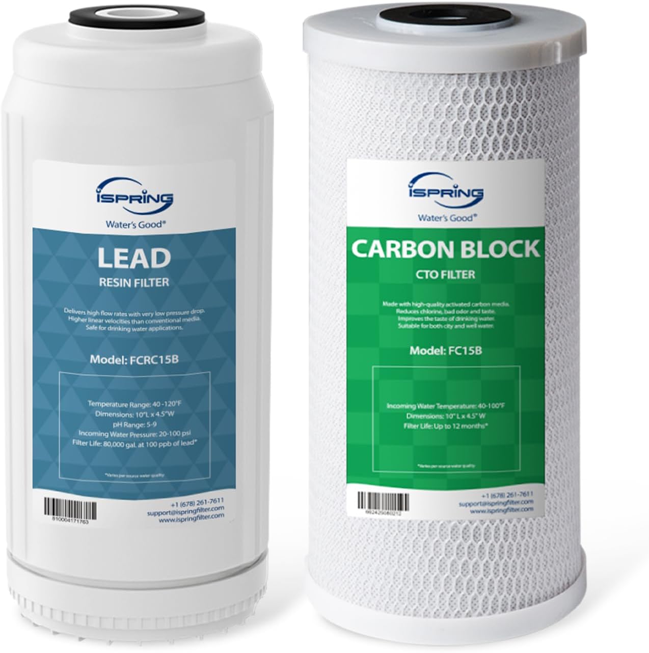 This pack includes one 10”x4.5” CTO carbon block filter (FC15B) and one 10”x4.5” anti-scale water filter (FWDS80K) - the official replacements for the iSpring whole house water filtration system WGB21B-DS. Keep your water filtration system at its best with this cost-effective filter set.
