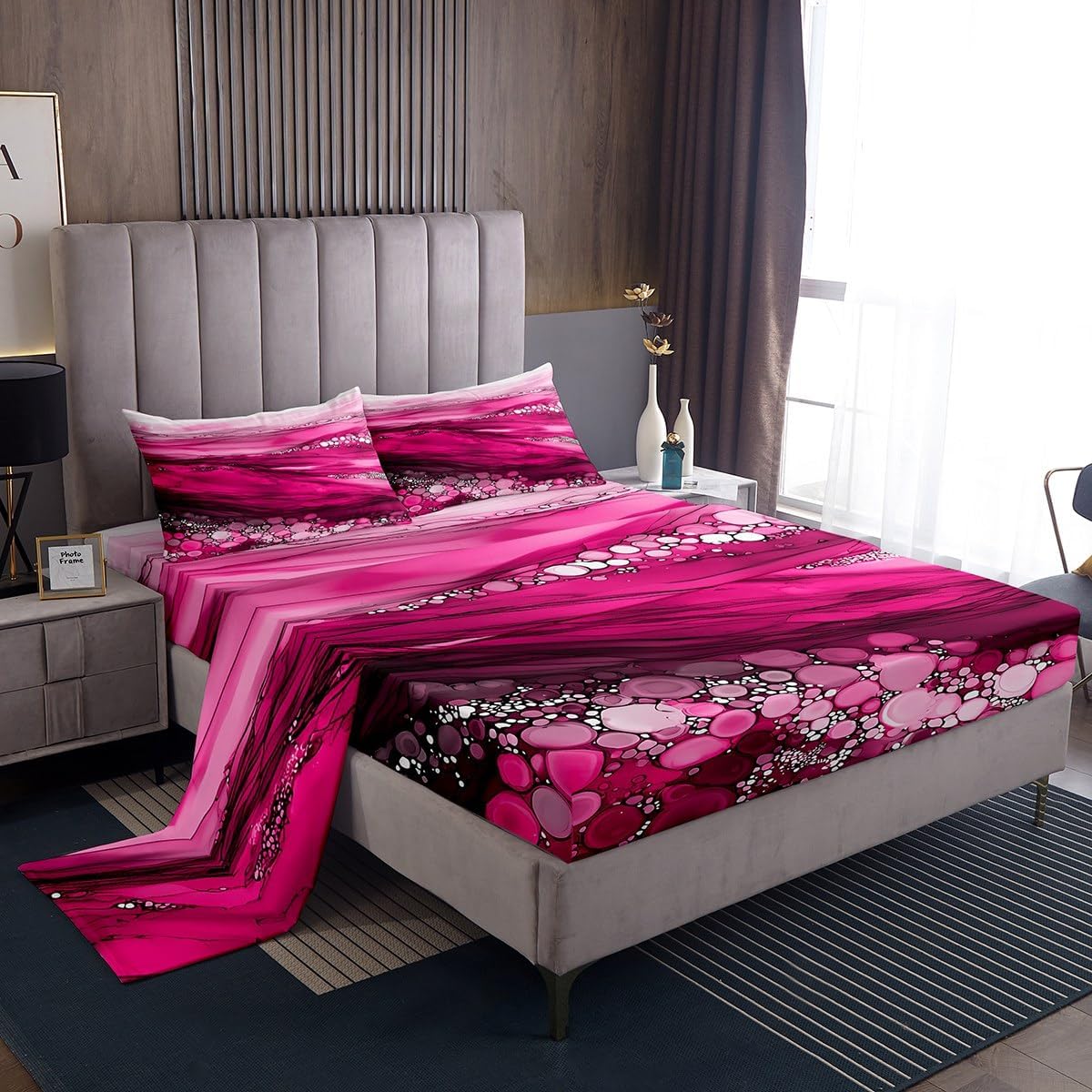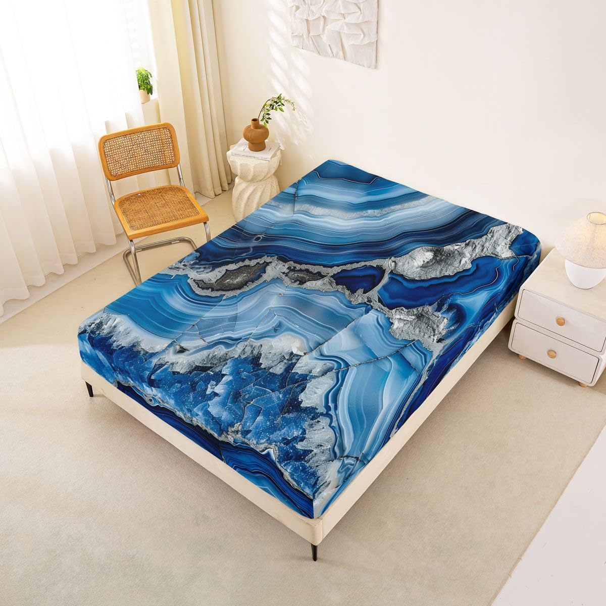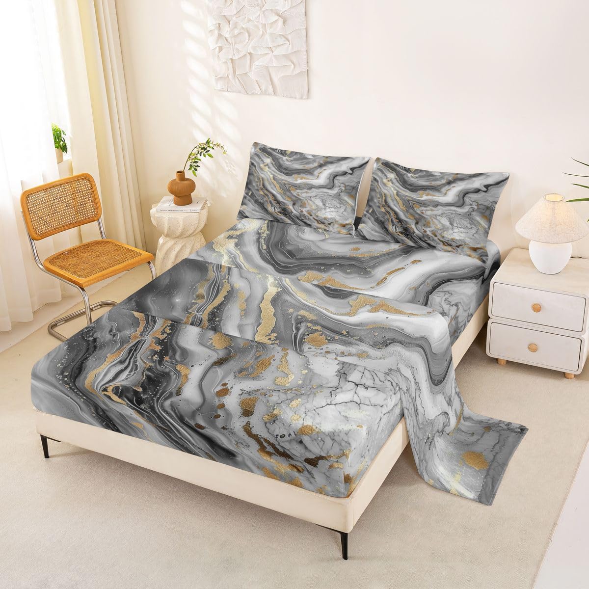 Our bed sheet is made of polyester fabric, lightweight and soft; stylish design is very suitable as room decoration for boys and girls; keep warm in winter and cool in summer; create a comfortable sleeping environment to make you fall asleep all night Range of size 1 twin fitted sheet 39 inch x 75 inch x 16 inch and 1 twin flat sheet 66 inch x 96 inch and 1 standard pillowcase 20 inch x 30 inch 1 full fitted sheet 54 inch x 75 inch x 16 inch and 1 full flat sheet 81 inch x 96 inch and 2 standard pillowcase 20 inch x 30 inch 1 queen fitted sheet 60 inch x 80 inch x 16 inch and 1 queen flat sheet 90 inch x 102 inch and 2 standard pillowcase 20 inch x 30 inch 1 king fitted sheet 78 inch x 80 inch x 16 inch and 1 king flat sheet 90 inch x 106 inch and 2 standard pillowcase 20 inch x 36 inch
