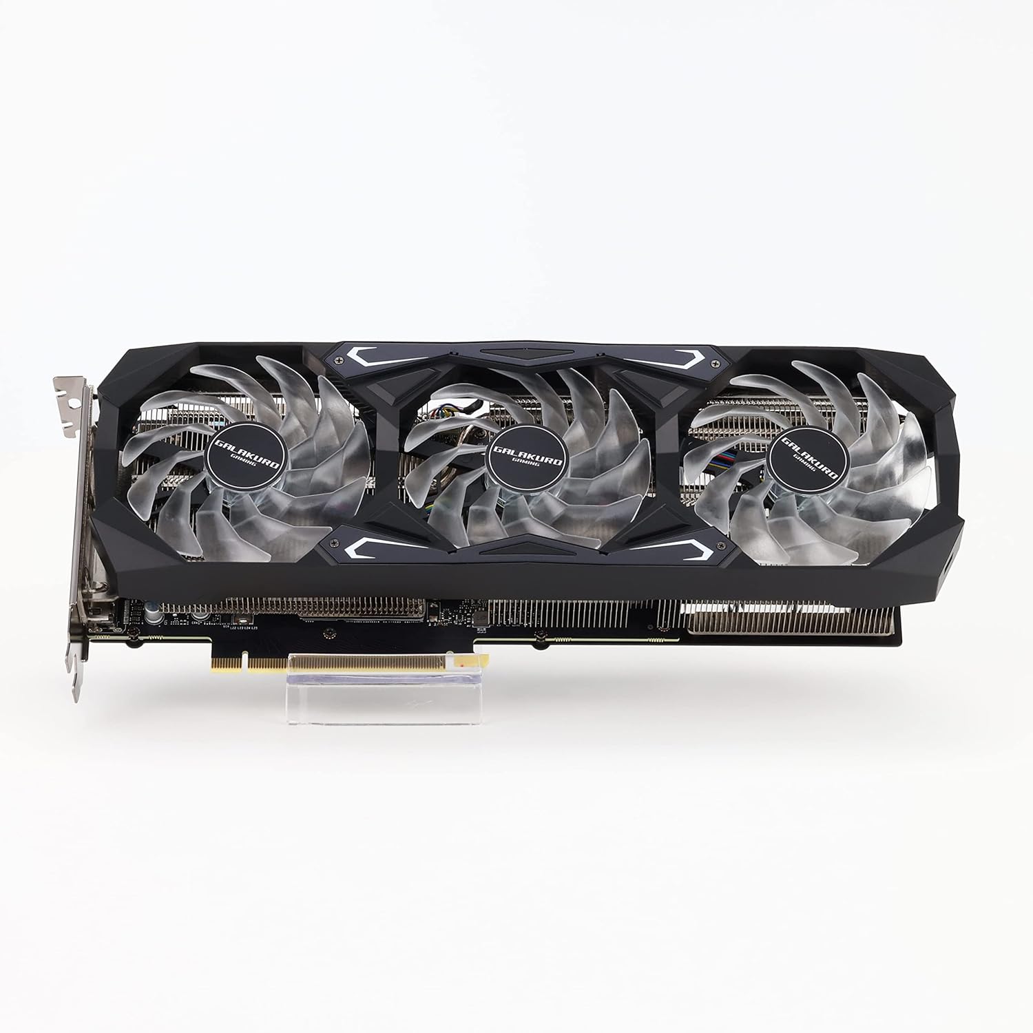 Chip: NVIDIA / RTX3070Ti Memory: GDDR6X 8GB (256-bit memory bus). [Core clock] Boost Clock 1,800 MHz Memory Clock: 19Gbps [I/F] PCI-E 4.0 x16 Output: DisplayPort x 3, HDMI x 1. Compatible with: DirectX 12. FAN: Triple Fan Auxiliary Power Supply: 8 pin x 2. Board Size: 12.4 x 4.4 x 2.4 inches (317 x 113 x 61 mm) (without Bracket)