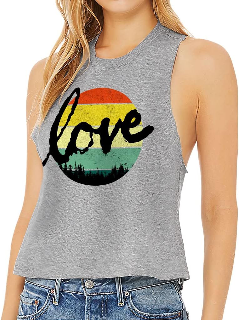 Cute and flattering Love Graphic Racerback Cropped Tank is suitable for most indoor or outdoor activities, such as gym, yoga, running, hiking, beach or relaxing around the house. Pair Vintage Women's Tank with your favorite sports bras, especially strappy ones, and high-waisted leggings, then you will enjoy cool and comfortable exercise throughout the summer.