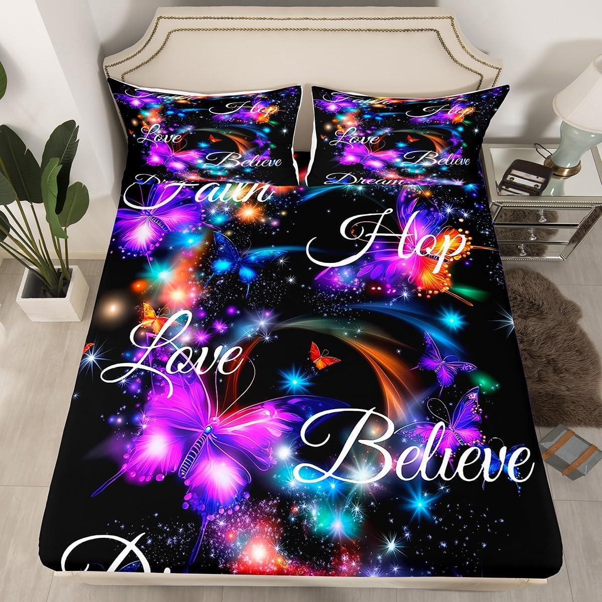 Our fashion Designs Match Any Decor,Modern Fitted Sheet Set Bedding Set,Simply Decorating Your Rooms Any Time You Want,Bringing You Fresh Feel for Year Round Use.Made From Polyester Microfiber Size Information Twin Size Include 2 Pieces Fitted Sheet Set: 1 Fitted Sheet 39"Wx75"Lx16"H(99x190x41cm) and 1 Pillowcase 20"x30"(51x75cm). Full Size Include 3 Pieces Fitted Sheet Set: 1 Fitted Sheet 54"Wx75"Lx16"H(137x191x41cm) and 2 Pillowcase 20"x30"(51x75cm). Queen Size Include 3 Pieces Fitted Sheet Set: 1 Fitted Sheet 60"Wx80"Lx16"H(152x203x41cm) and 2 Pillowcase 20"x30"(51x75cm). Personalize Your Bedroom Beautiful Design and Colorful Print Bed Set,Makes Your Bedroom Unique and Brings You a Wonderful Dream. Washing Instructions Machine Wash Separately In Cold Water,Hang Dry,Do Not Bleach. The Soft Fitted Sheet Bedding Sets Designed for Children,Adult,Men,Women,Teens.This Bed Sheets Is Also Suitable for Full Seasons,Spring,Summer,Autumn and Winter. We Are Dedicated to give You An Excellent Experience, Satisfaction Service from The Moment You Place Your Order Until You Sleep on Your New Bedding The First Time.