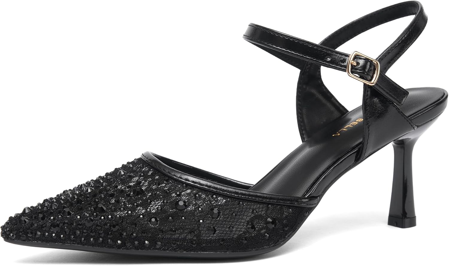 Shine with dazzling elegance in NEWBELLA Women's Rhinestone Stiletto Pumps, expertly crafted to deliver breathtaking style and sophisticated comfort for your most important occasions. These exquisite pumps feature a luxurious sparkly mesh upper adorned with carefully placed rhinestones that catch the light with every step, creating a radiant impression at weddings, parties, or formal office events. The sleek pointed toe design elongates your silhouette while the secure ankle strap with adjustable buckle ensures a customized fit that keeps these heels comfortably in place throughout hours of dancing or standing. Designed with a classic stiletto heel that adds feminine allure and confidence to your posture, these pumps are crafted with a cushioned insole and supportive footbed that provide exceptional comfort for extended wear. The closed toe design offers elegant coverage while the breathable mesh material ensures your feet stay comfortable throughout your event. Perfect for complementing evening gowns, cocktail dresses, or professional attire, these versatile pumps seamlessly transition from wedding ceremonies to corporate functions while maintaining their stunning appearance and comfortable wearability.