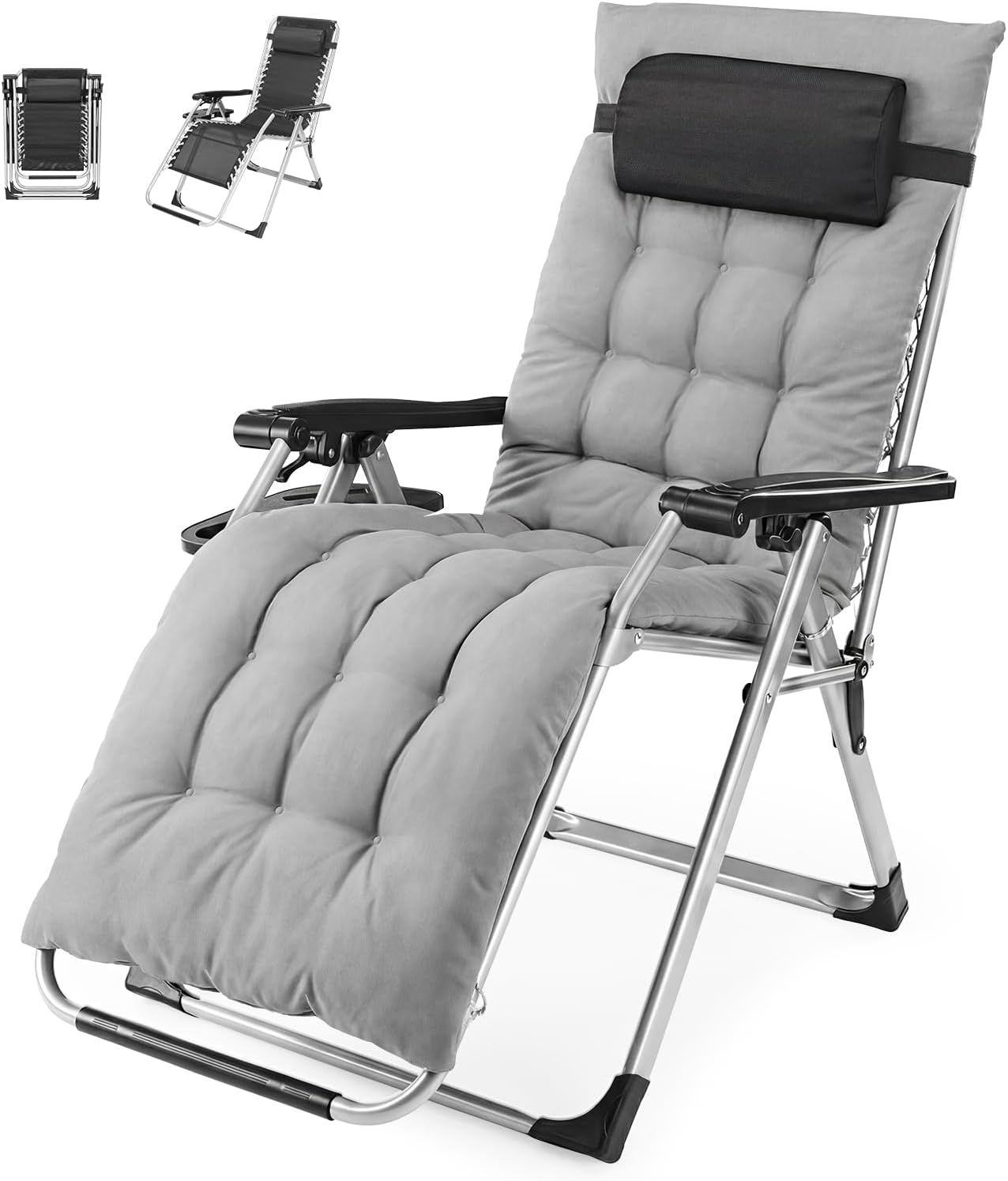 | Item Type Name | Foldable Outdoor Lounge Chair for Patio, Camping & Backyard, Portable Anti-Gravity Recliner, Adjustable Locking, Removable Tray, 330 lbs Capacity, Black & Grey |