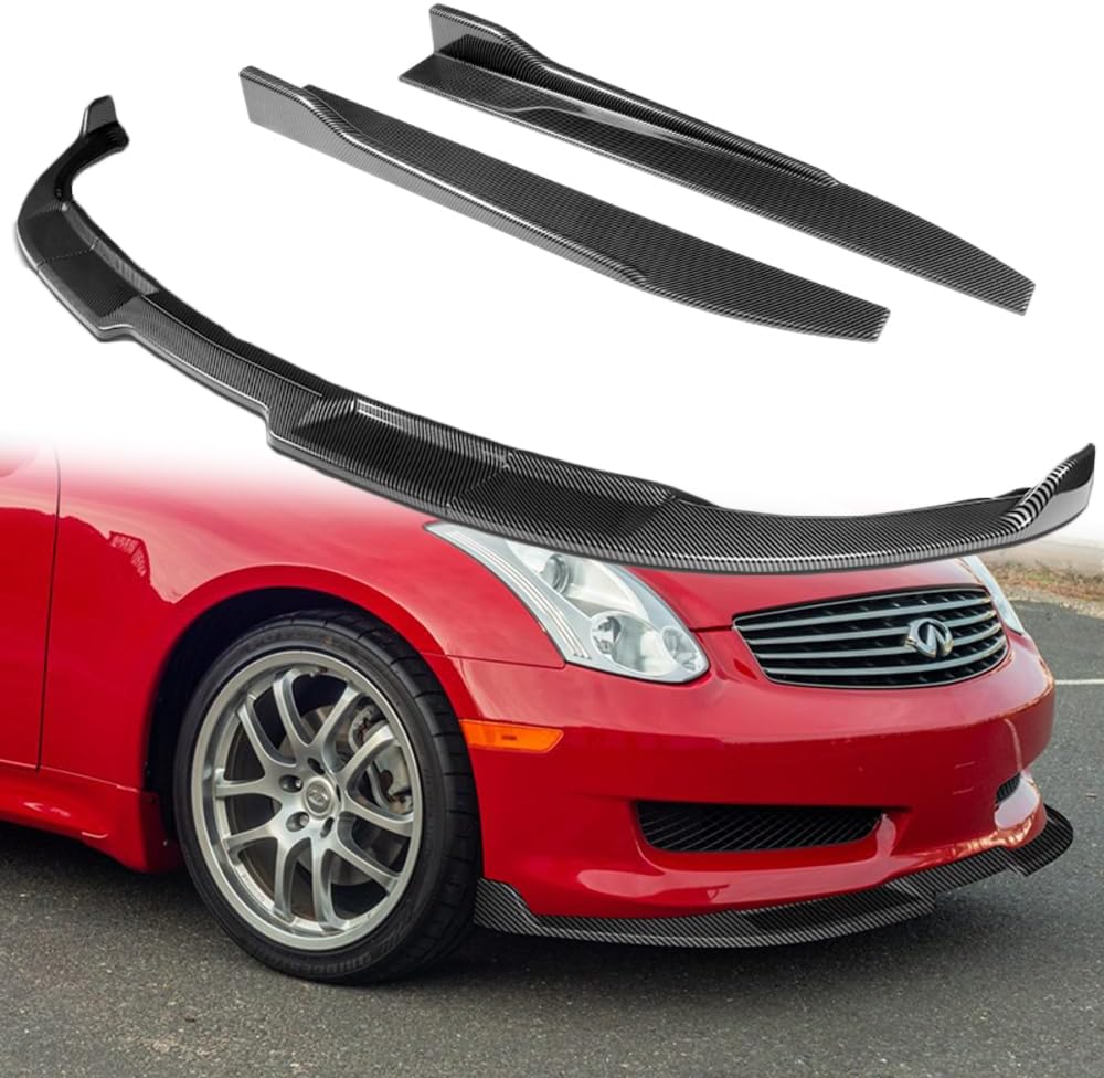 Compatibility:Compatible with 2003 2004 2005 2006 2007 Infiniti G35 Coupe / 2-Door OnlyPackage includes: 1 x 3 Piece Front Body Kit Bumper Lip 1 x 2 Piece Side Skirt Splitters Diffuser Wing INSTALLATION INSTRUCTION IS NOT INCLUDED Front Bumper Lip (3PCS) Features: 100% Brand New that has never been used or installed Great Upgrade For Your vehicle's exterior look Easy installation ( Professional installation required ) Improves the aerodynamics of Your Vehicle Gives your vehicle an improved appearance and Style Made From High Quality ABS that is Very Flexible and won't Crack Gives your vehicle a sporty ang aggressive look Side Skirt Splitters Diffuser (2PCS) Features: 100% Brand New that has never been used or installed Great Upgrade For Your vehicle's exterior look Easy installation ( professional installation required ) Improves the aerodynamics of Your Vehicle Gives your vehicle an improved appearance and Style Made From High Quality ABS that is Very Flexible and won't Crack Gives your vehicle a sporty ang aggressive look Size: 31" x 4" x 3"