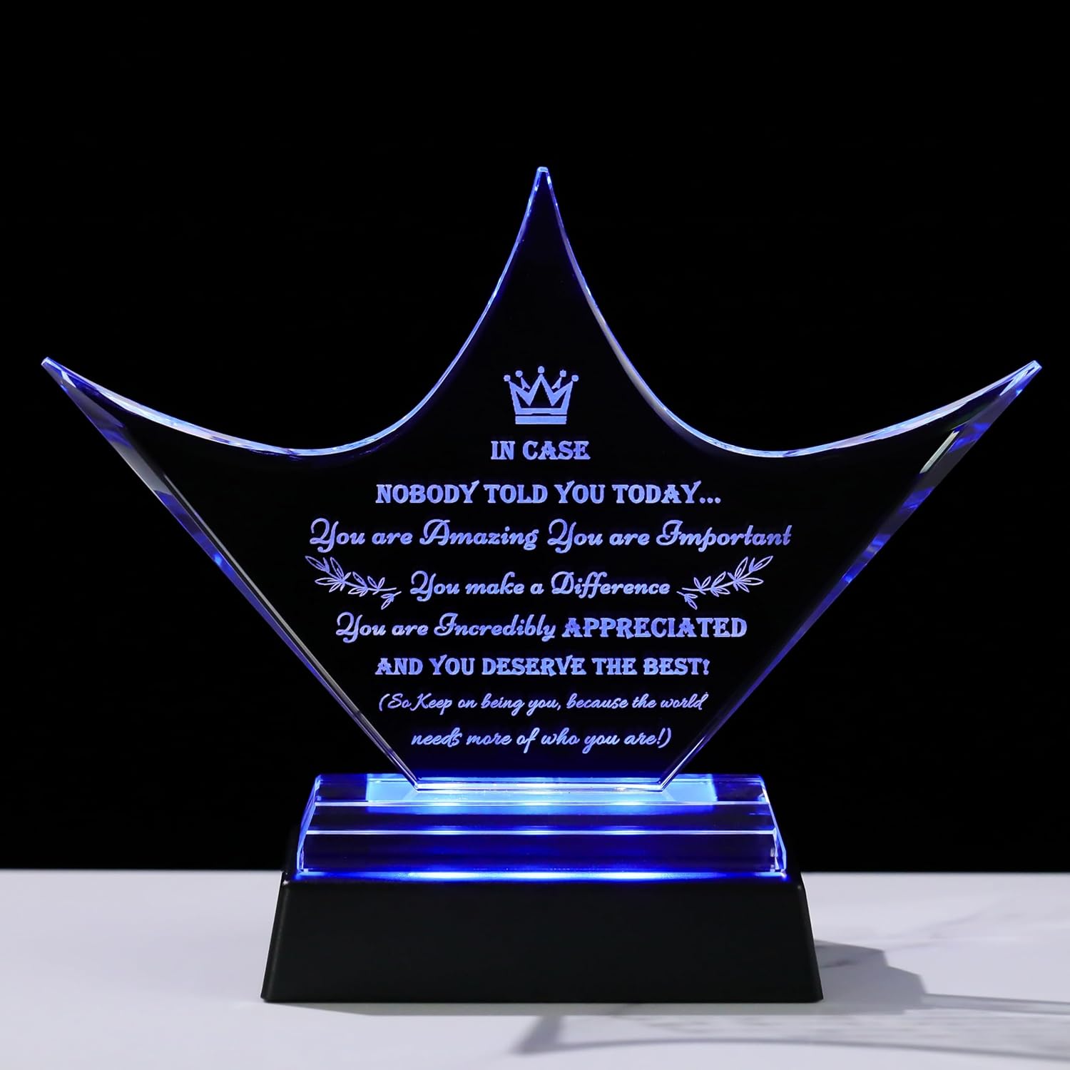 | Additional Features | Crystal Material, LED Color-Changing Base, Engraved Bible Verse, Butterfly Design |