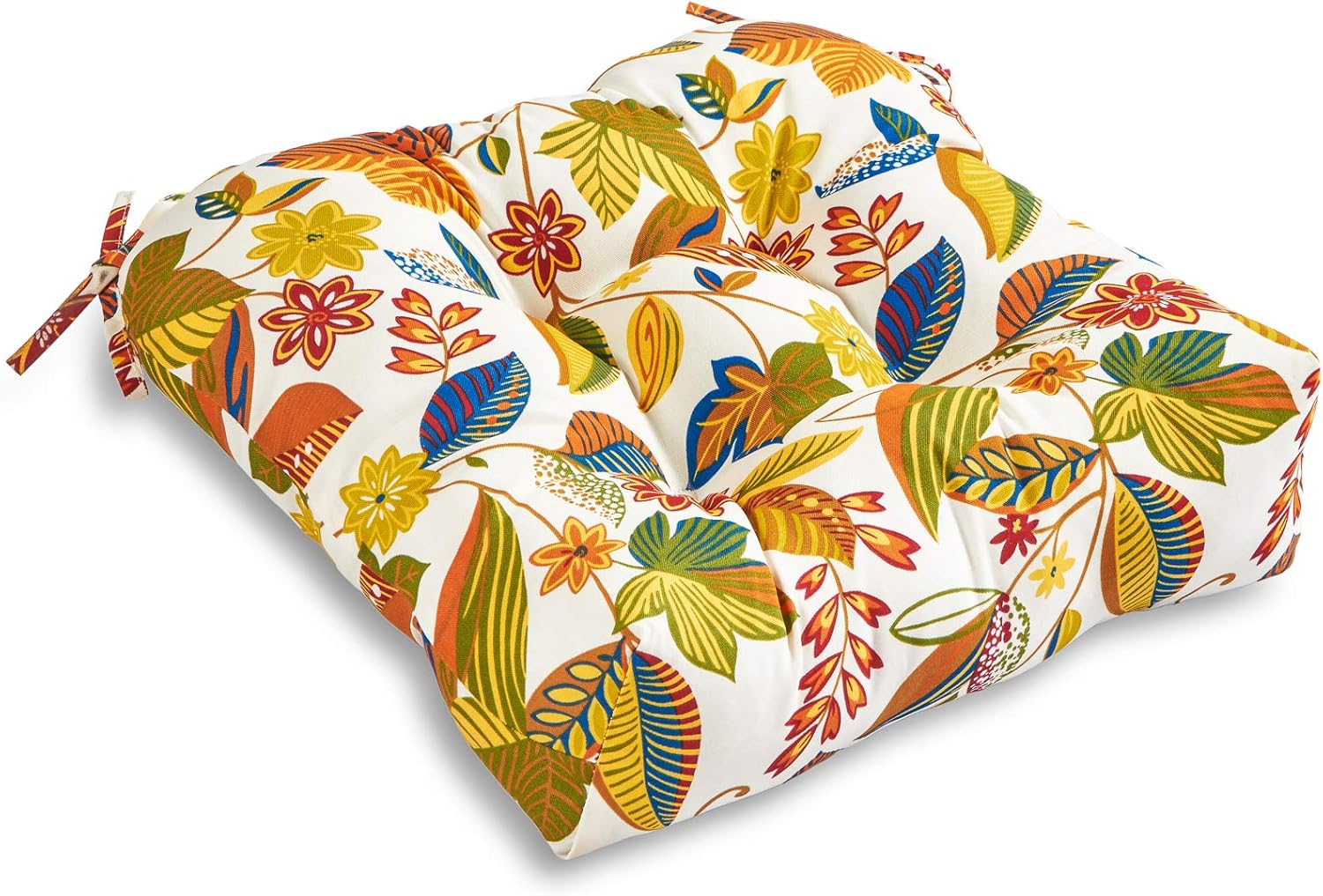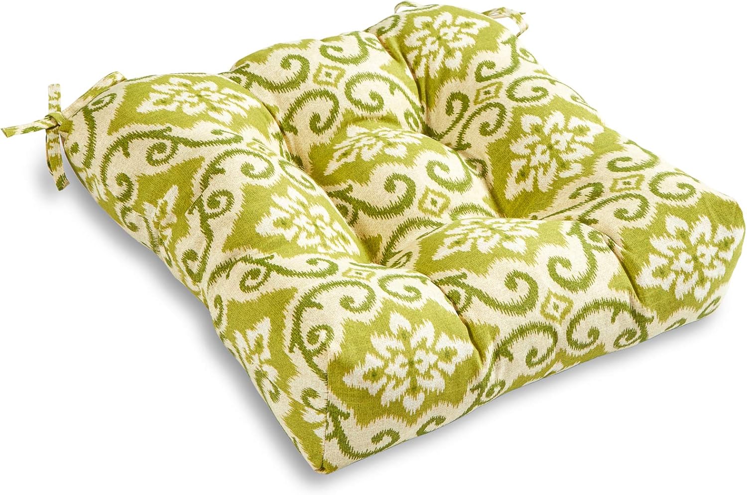Give your outdoor dining chair a cozy and attractive update with this South Pine Porch outdoor seat cushion. This cushion fits most standard outdoor dining furniture, and comes with string ties to keep cushion firmly in place. Circle tacks create secure compartments which prevent cushion fill from shifting. Each cushion is overstuffed for lasting comfort and durability with a soft polyester fill made from 100% recycled, post-consumer plastic bottles, and covered with a UV resistant, 100% polyester outdoor fabric. A wide assortment of colors and prints are available to complement your outdoor decor.All South Pine Porch cushions and pillows are individually filled and sewn closed in the USA.Cushion dimensions are +/- 2 inches. Please note product will arrive in a slightly compressed state; please allow a few days for product to expand to final size listed in description.