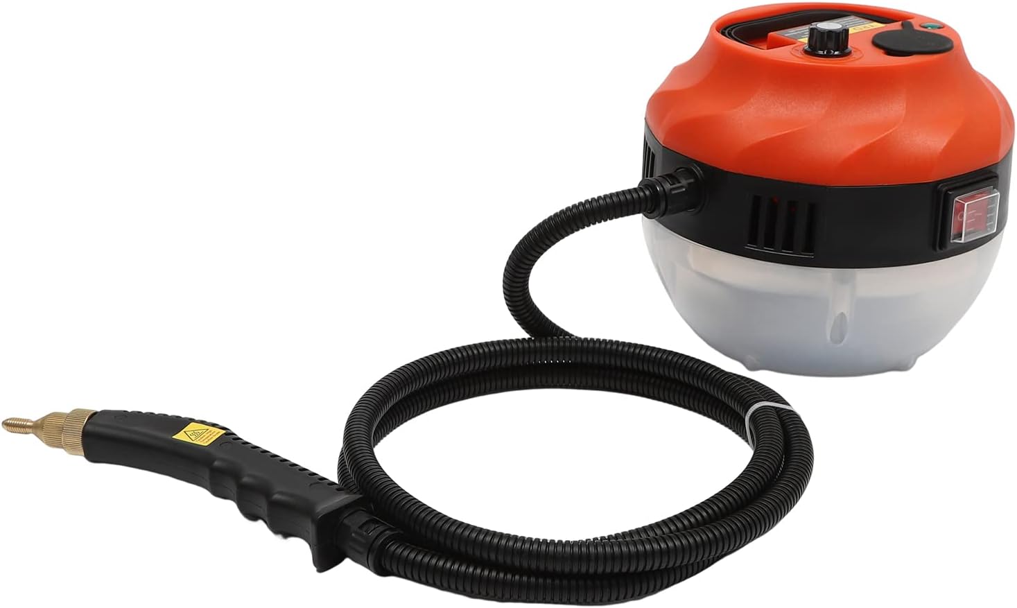 If you have any questions, please find us to help you deal with them, thank you Specification Color:OrangeMaterial: Plastic, Pure Copper, Stainless SteelWater Shortage Alarm Function: YesPower Source: Corded ElectricPlug: US StandardVoltage: 110VPower: About 1600WWater Tank Capacity: About 1.35L/0.35GalWater Consumption: 50-400ml/1.69-13.5oz/minOutlet Temperature: >105℃/221℉Steam Pressure: About 5.5BARNumber of Gears: 6Steam Ready-in: 15sSteam Duration: Over 30minPower Cord Length: 1.5m/59.06inchExtension Tube Length: About 25cm/9.84inchExplosion-proof Steam Pipe Length: 2m/6.56ftProduct Size: 17*17*16cm/6.7*6.7*6.3inchPackage Size: 22*22*20cm/8.66*8.66*7.87inchNet Weight: 1.65kg/3.63 lbsGross Weight: 1.84kg/4.05 lbs Package Included 1* Steam Cleaner1* Large Round Brush1* Bristle Brush1* Steel Brush1* Extension Tube1* Power Cord2* Waterproof Washers1* English Manual Notes 1.Before leaving the factory,each unit will be tested,there will be water traces on the water inlet hose.2.Please be careful when installing the brush heads.Before installing the brush head,please confirm that there is a rubber washer in the nozzle or the extension tube to avoid leaking.3.In case of any abnormality during use,please shut down the machine and cut off the power supply immediately.4.We recommend stopping after about 30 minutes of operation to check if the nozzles are not clogged.5.There is residual heat on the surface of the nozzle and shell,so be careful not to burn your hands.Please do not use it without water.6.It is forbidden to aim the water outlet at people and animals.7.Please beware of potential electrical safety hazards.