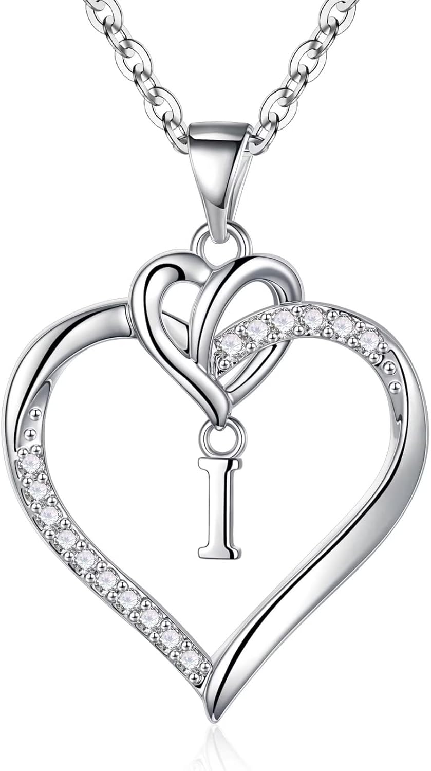 HEART INITIAL NECKLACES: Heart Initial Necklaces with forever love heart, dainty cute initial heart necklaces for women jewelry with sweet meaning. 26 letters to choose from, each letter is your unique symbol