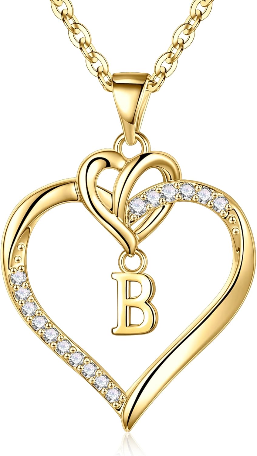 STORUP Mothers Day Gifts - Heart Initial Necklaces for Women Girls Gift, 14K-Gold-Plated Initial A-Z Heart Necklaces for Teen Girl Jewelry Birthday Mothers Day Gifts for Mom Wife Her