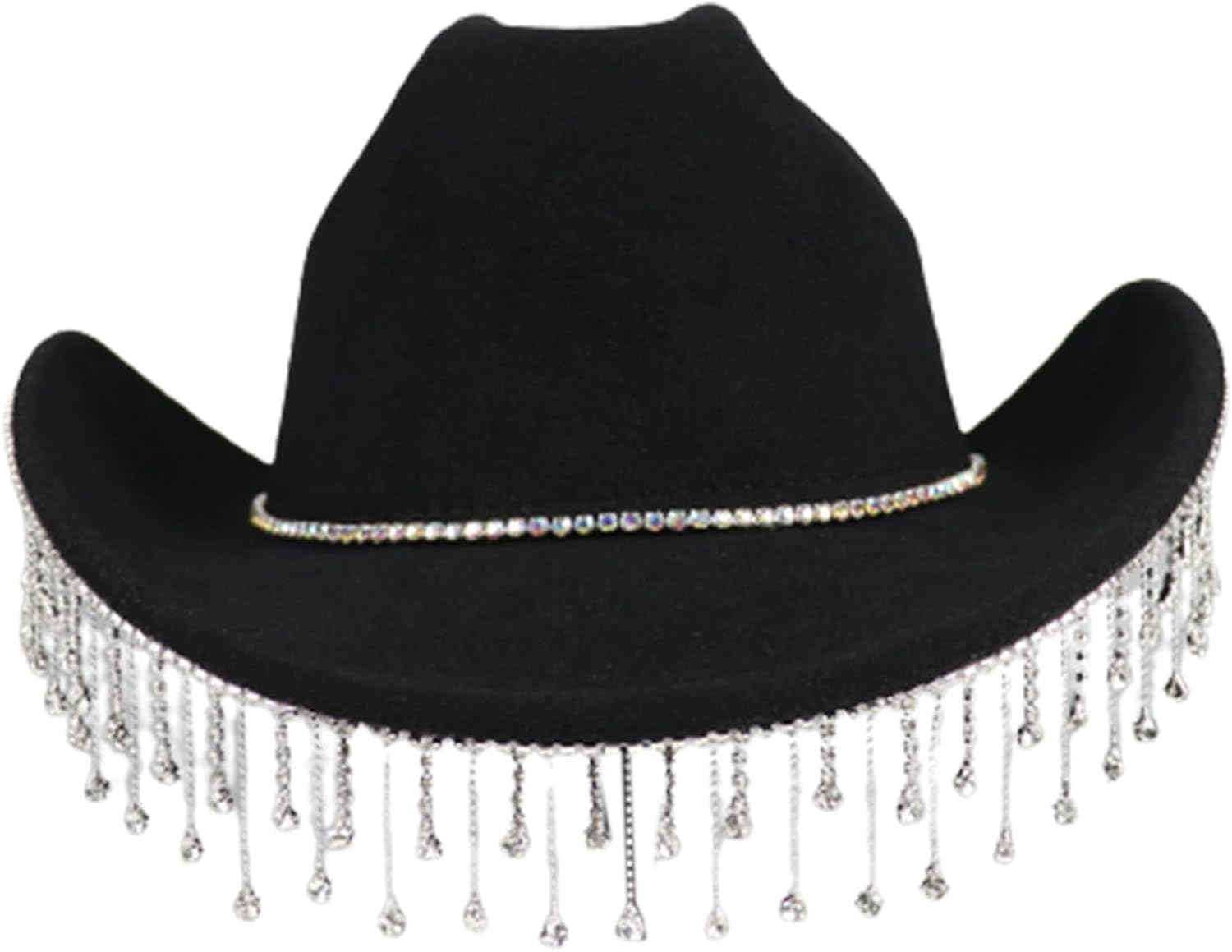 Vacation Cowboy Hat Tassels Disco Surprise Girl Boys Cowgirl Hat For Carnivals Music FestivalFeatures:Ready to be at parties?The tassels on the hat gives the overall design more of movement and fashion, allowing the wearer to show his personality and unique Our cowboy hat will be gleaming under the light, easily make you from the crowd. The unique design features gleaming crystals that reflect the light beautifully.Our hat has good breathability, comfort and fit, so that the wearer can feel comfortable wearing These cowboy hats are as fine accessory to most adult outfits, for both men and women to wear prom, party, holiday or music festivals.Specifications:WoolenHead Circumference: Approx.56-58cm/22.05-22.83inchColor: 2 Kinds OptionalPackage Includes:1x Cowgirl HatNote:1.Please allow 1-2cm errors due to manual measurement, make sure that you do not mind before you order. 2.Due to the differences between different monitors, the picture may not reflect the actual color of the item.
