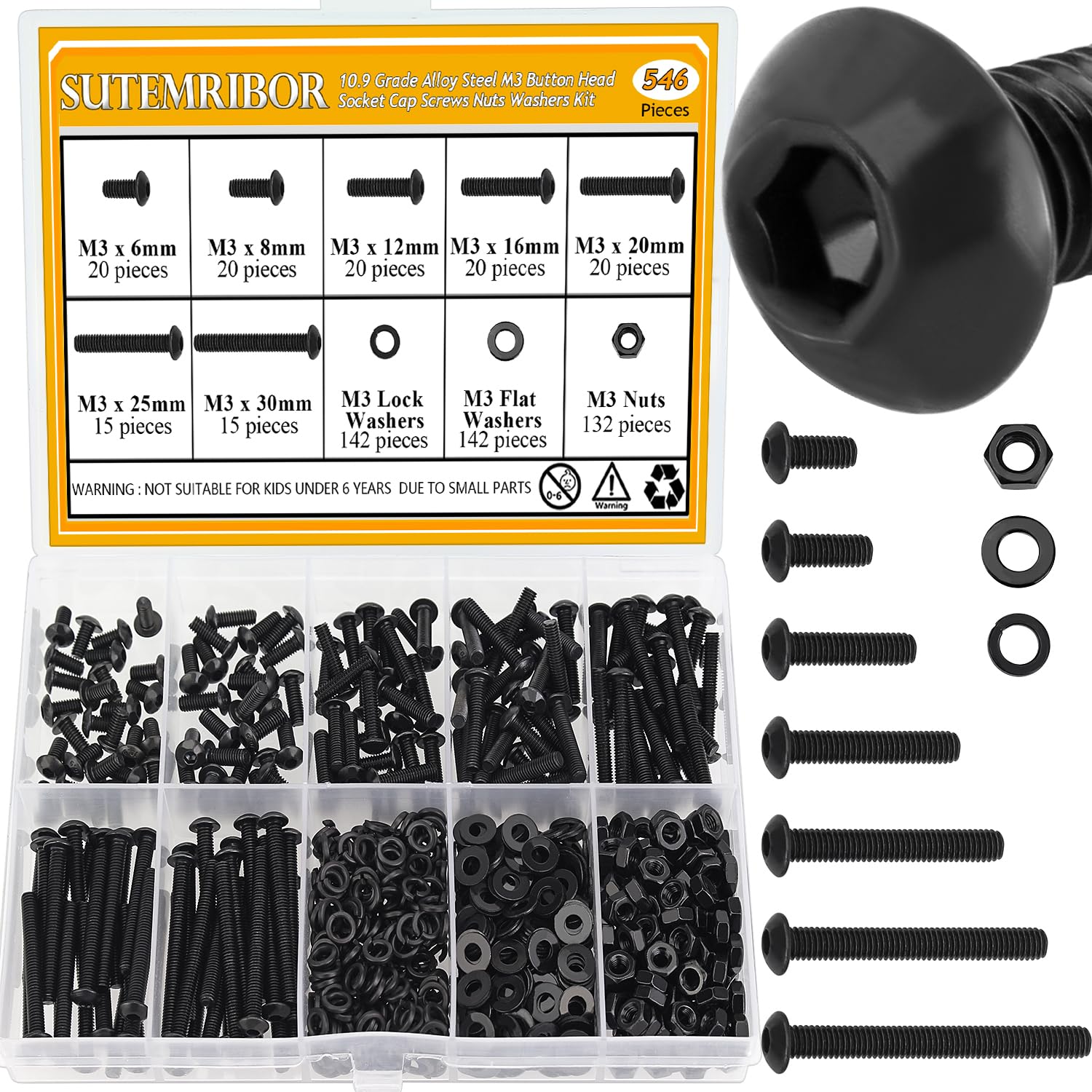 Specifications: - Color: Black - Quantity: 815 Pieces - Sizes: M3 M4 M5 M6 - Drive Type: Internal Hex - Material: 12.9 Grade Alloy Steel - Screw Type: Hex Socket Head Cap Screws Feature: 1, High quality 12.9 grade alloy steel have high strength, not easy to deform, corrosion resistance and wear resistance in bad environment, which can ensure a long time using. 2, Sutemribor M3 M4 M5 M6 black screws nuts washers are well made, with smooth surface, which are commonly used in machinery, it mainly has the advantages of easy fastening, disassembly, and not easy to slip corners. 3, Widely used for precision machinery industry, classified instruments, instruments, electronic products, printed projects, household appliances, communication products, locks, lamps, lights, toys, etc. Package includes: 20 Pieces M3x8mm 20 Pieces M3x12mm 20 Pieces M3x16mm 20 Pieces M3x20mm 91 Pieces M3 Hex Nuts 91 Pieces M3 Flat Washers 20 Pieces M4x8mm 20 Pieces M4x12mm 20 Pieces M4x16mm 20 Pieces M4x20mm 90 Pieces M4 Hex Nuts 91 Pieces M4 Flat Washers 15 Pieces M5x8mm 15 Pieces M5x12mm 10 Pieces M5x16mm 10 Pieces M5x20mm 50 Pieces M5 Hex Nuts 61 Pieces M5 Flat Washers 10 Pieces M6x8mm 10 Pieces M6x12mm 10 Pieces M6x16mm 10 Pieces M6x20mm 40 Pieces M6 Hex Nuts 51 Pieces M6 Flat Washers 4 Pieces Hex Wrenches Note: the product are small parts, keep away from children and kids