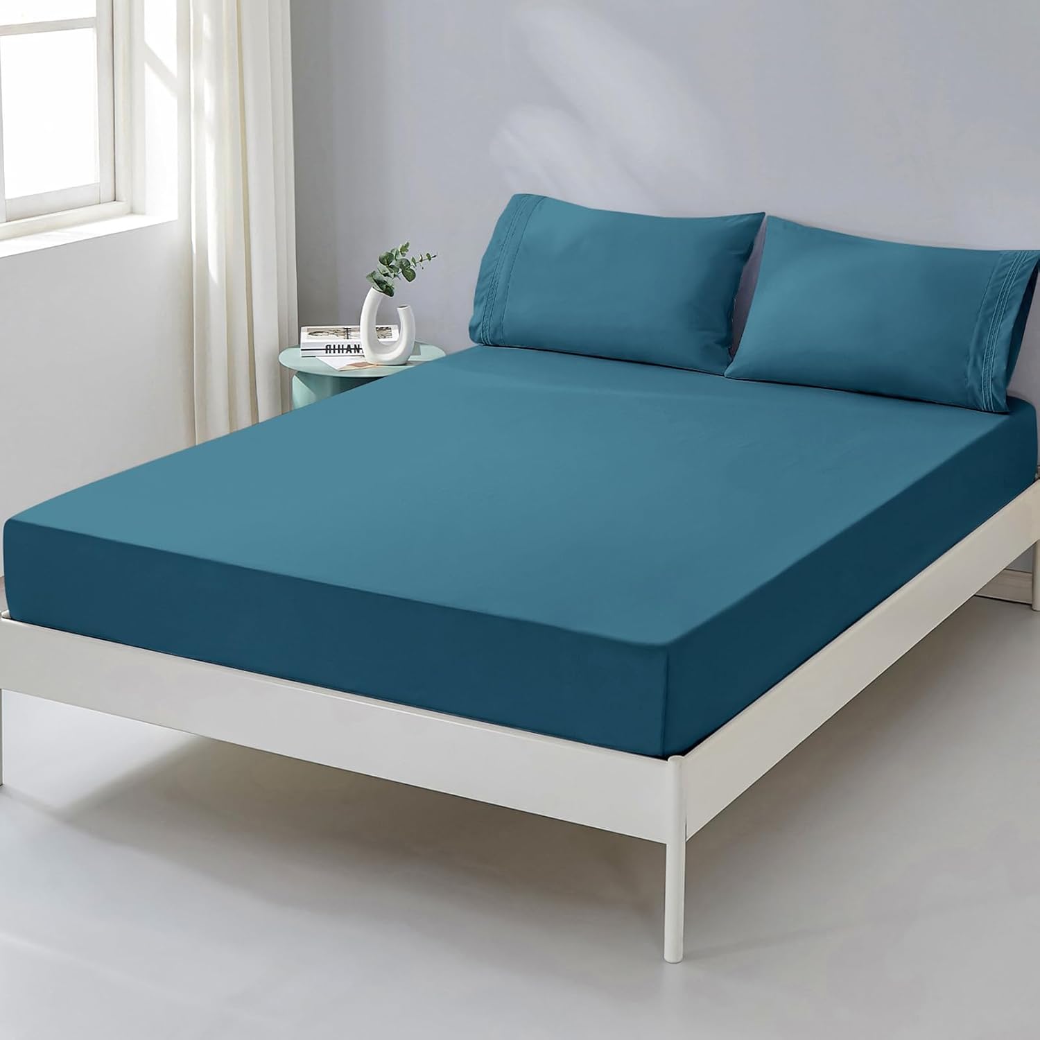 HCORA Fitted Sheet with Pillow CasesMaterial: 100% Brushed MicrofiberFEATURES:Ultra SoftVibrantDurable16 inch Deep pocketMachine WashablePackage Includes:2 Pillowcases (Twin size only has one)1 Fitted Sheet