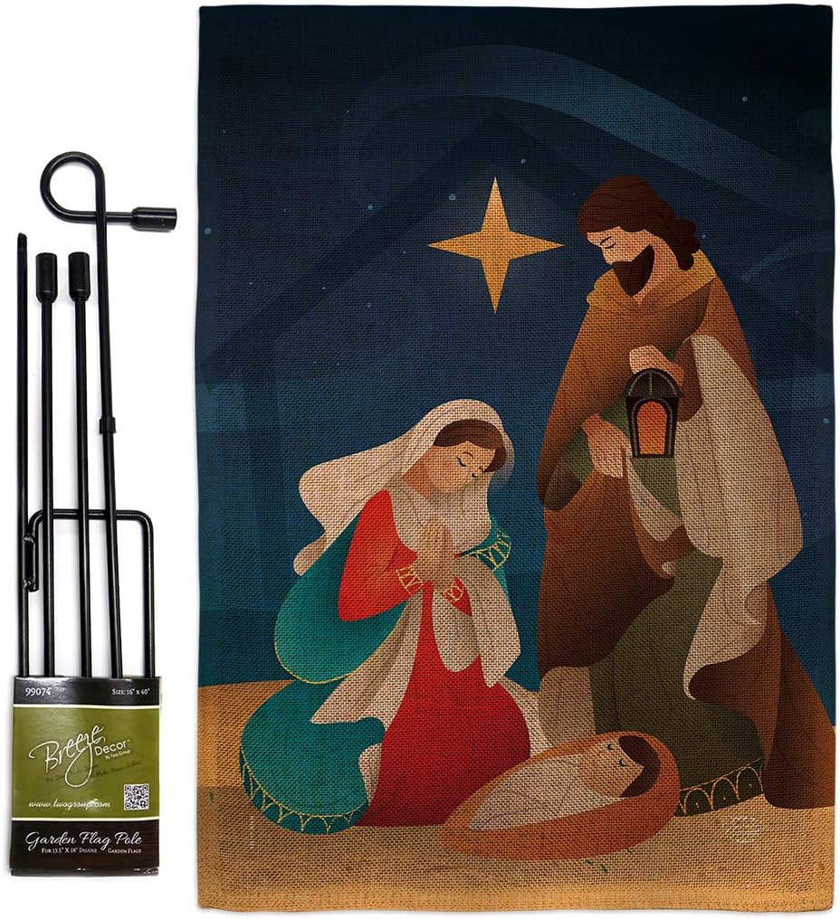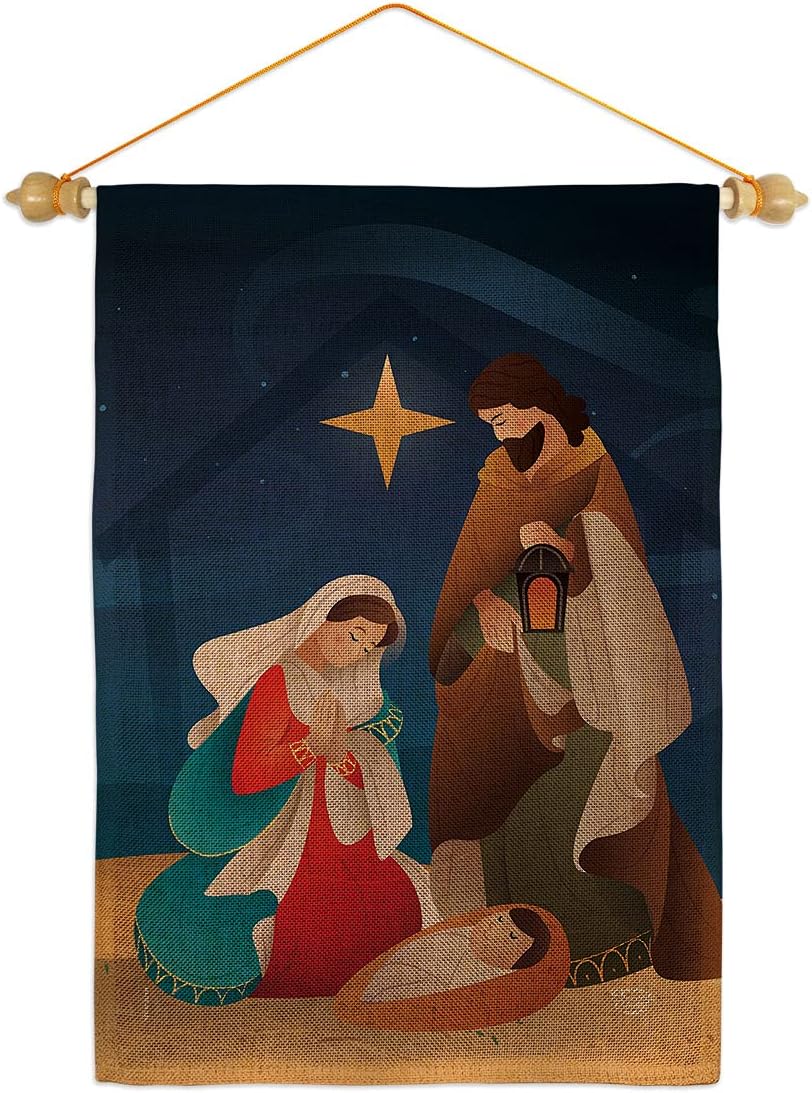 Nativity Beautiful Mini Garden Flag with Metal Garden Banner Pole Stand - Complete Set with Fansy Wall Bracket - 12" x 16" Power Coated Metal Flag HolderOrnament Collection have variety of Garden Flag Set for all occasions. Uniquely design for hanging indoor or outdoor use. We are committed to offering you exceptional values. Our customers enjoy displaying our Garden Flag Set for longer periods. Specification: Theme: Nativity Size: Garden Flag Set 13" x 18.5" Size: Metal Fansy Wall Bracket Print: Double-Sided Readable: Readable Single Side Material: Weather Resistant Polyester 300 D Stitching: Double Stitched Display: Vertical Hang Type: Sleeve Artist: Brad Whitewood Special Features: Origin: Made In USAPackage Include: 1 pc x Mini Garden Flag 13" x 18.5" 1 pc x Metal Yard Banner HardwareFor more than a decade, we’ve been dedicated to manufacturing flags with no comparison in quality and beautiful designs. Our flags are made with our Pro Guard material that is soft to the touch and designs can be read correctly on the flag. A feature that our customers will love. We are committed to using eco-friendly inks that won’t leave a foot print in our environment. MPN: OC-NT-GS-192260-IP-P3-03-S-US20-OC 92260 92260