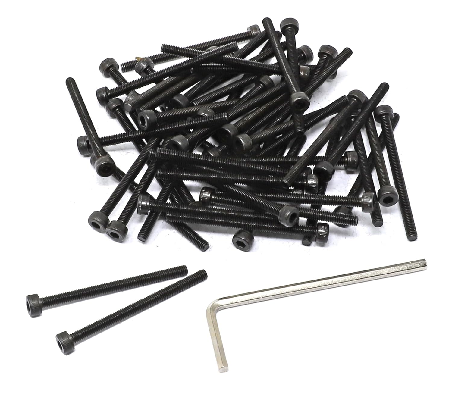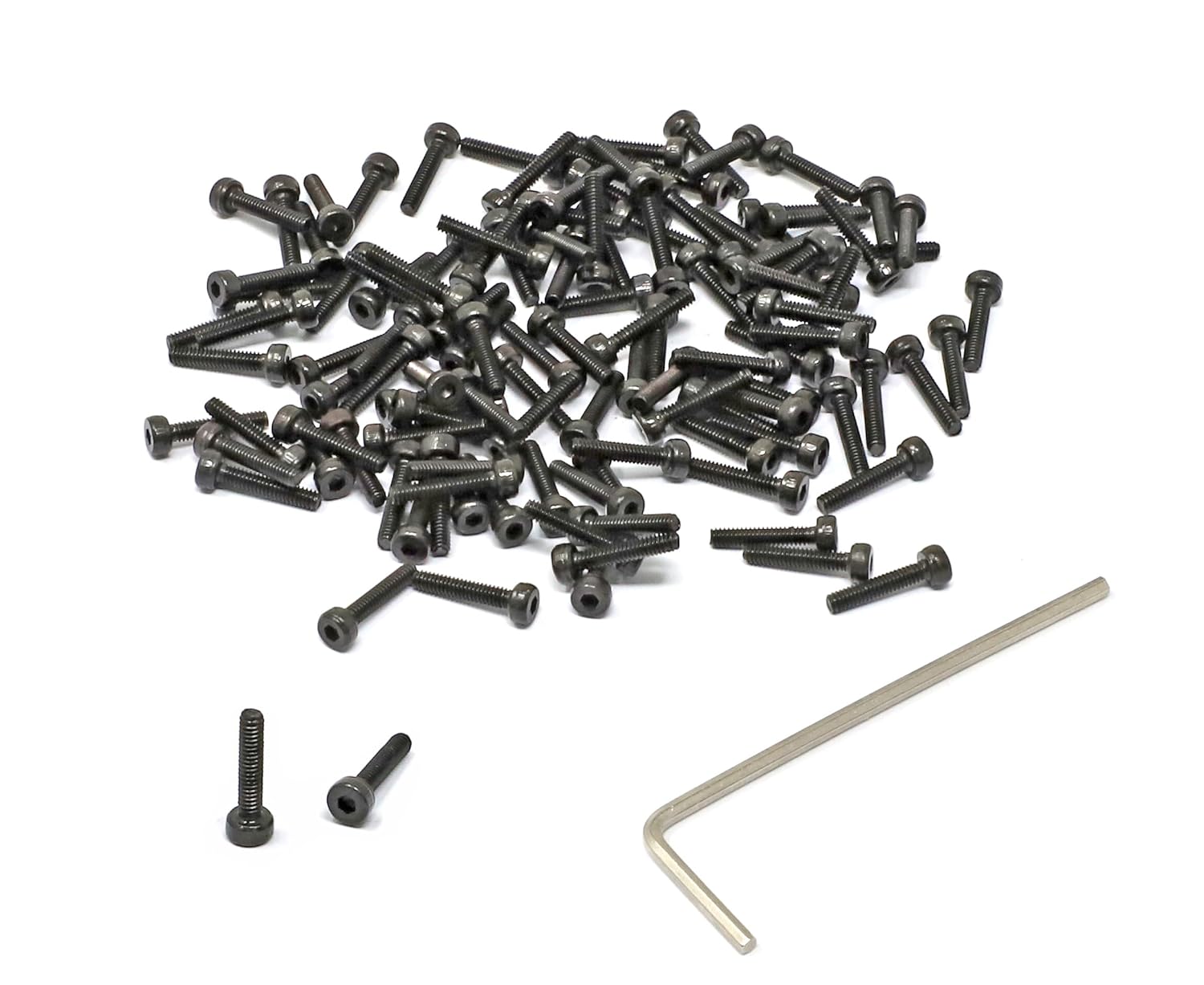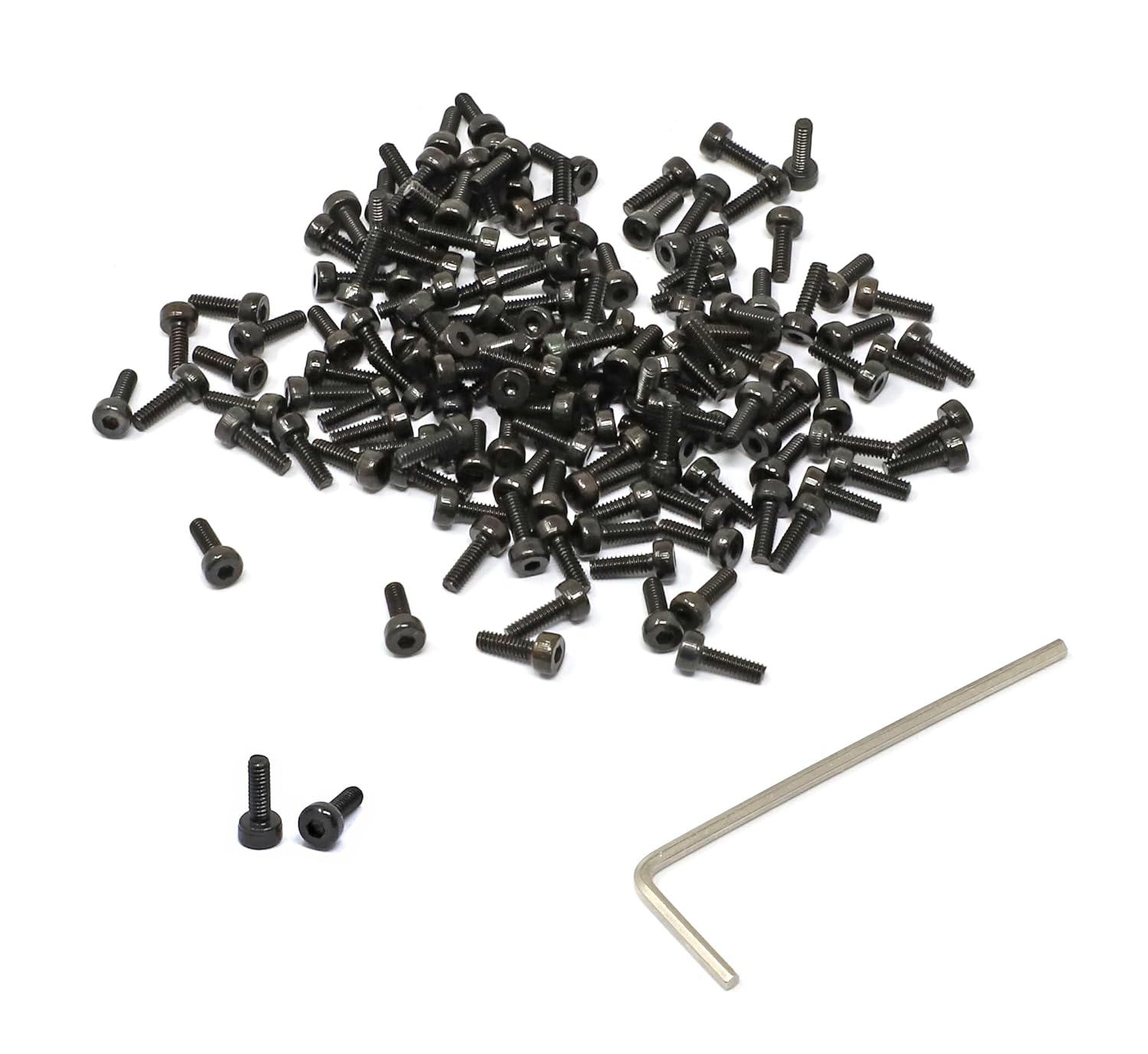 【100 Pcs M2 x 4mm Hex Socket Head Cap Screws + 1 Pcs Hex Key Come In a Plastic Storage Box】 ✔ Contains 100 Pcs M2 x 4mm hex socket head cap screws --Meets/exceeds: DIN912 --Thread size ( diameter ): 2 mm --Thread Pitch: 0.4 mm --Thread Length: 4 mm ( Range: 4.00 ± 0.24 mm), Total Length ( includes head ): 5.93 mm ( Range: 5.93 ± 0.31 mm ) --Screw head style: socket cap head, head diameter: 3.80 mm ( Range: 3.80 ± 0.18 mm), Head Height: 1.93 mm ( Range: 1.93 ± 0.07 mm) --Screw drive style: hex socket drive, also known as internal hex drive, hex size: 1.5 mm --Made of alloy steel 40Cr, black oxide finish, high strength and anti-rust --Strength grade of screws : 12.9 Grade, hardness: HRC 39-44, tensile strength: 1220 N/mm² ✔ Contains 1 Pcs hex key to drive these screws conveniently and easily --Hex size: 1.5 mm --Made of chrome-vanadium steel, nickel plated, higher strength, anti-rust ✔ Easy to store: these 100 Pcs M2 x 4mm hex socket head cap screws and 1 Pcs Hex Key come in a plastic storage box, organized conveniently and easily [ Package Contains ] M2 x 4mm-----100 Pcs Hex Key------1 Pcs [ What is Hex Socket Drive ] Hex Socket Drive, also known as Internal hex drive, have a hexagonal hole in the center that requires an Allen key, also known as a hex key or Allen wrench [ What is Socket Cap Head ] Socket Cap Head , also known as Allen head, have a recessed drive, and are commonly used when there is not enough clearance for a conventional wrench or socket. They are fastened with an Allen wrench, which is also called a hex wrench or hex key