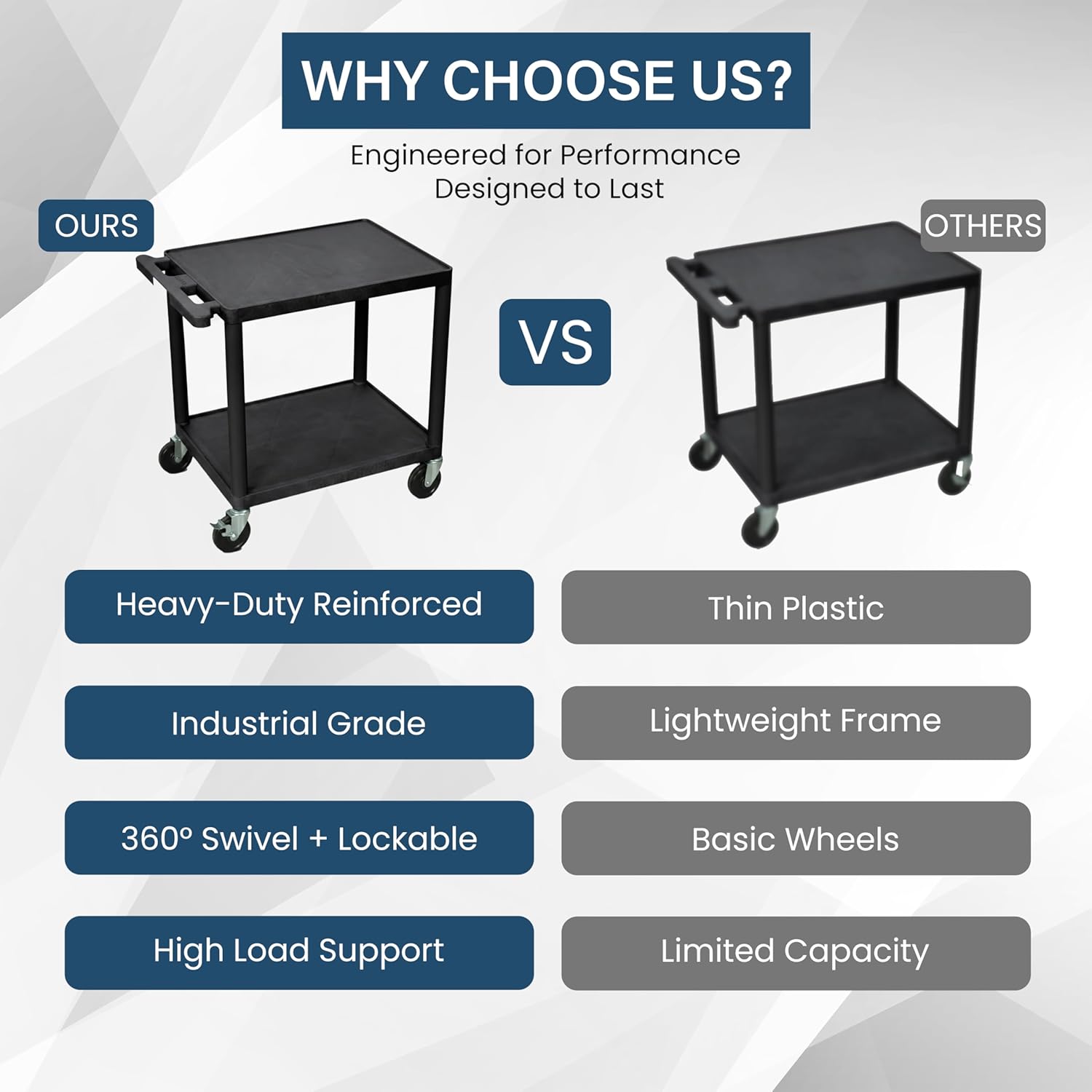 | Additional Features | 2 tier cart, Durable shelves, Ergonomic push handle, Full-swivel casters, Rolling cart |