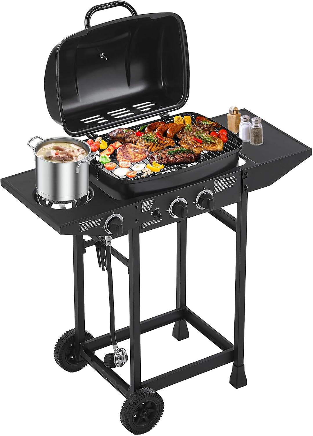 Elevate your outdoor cooking with the Lyromix 3-Burner Gas Grill. Spacious, versatile, and durable; grill steaks, veggies, and more while the side burner handles sauces or sides with ease.