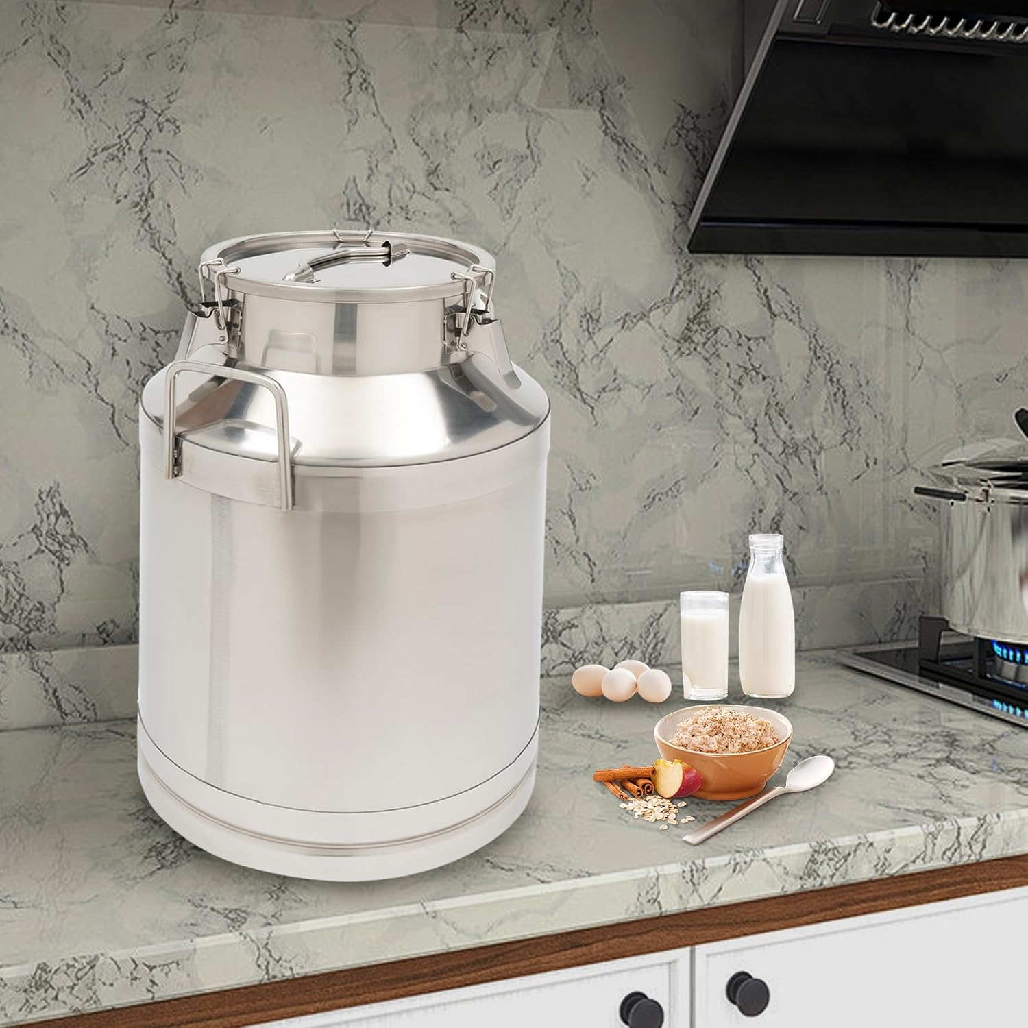 ApplicationIt is ideal for storing various liquid/solid items, such as edible oil, milk, honey, flour, grains, tea, etc, in hotels, restaurants, kitchens, warehouses, living rooms, etc.SpecificationsMaterial: 201 Stainless Steel, SiliconColor: SilverStyle: Modern, SimpleShape: CylinderSurface Treatment: Polishing Process, Seamless Welding ProcessNumber of Items: 1PCWall Thickness: 1mmMax Capacity: About 60L/15.85 GallonsBarrel Mouth Diameter: 26cm/10.23inchGross Weight: 9.8kg/21.6lbsNet Weight: 7kg/15.43lbsProduct Size (D*H): 37.5*62.5cm/14.76*24.6inchPackage Size: 42*40*69.5cm/16.53*15.74*27.36inchPackage Included1*Milk CanNotesOnly milk can is included in the package.