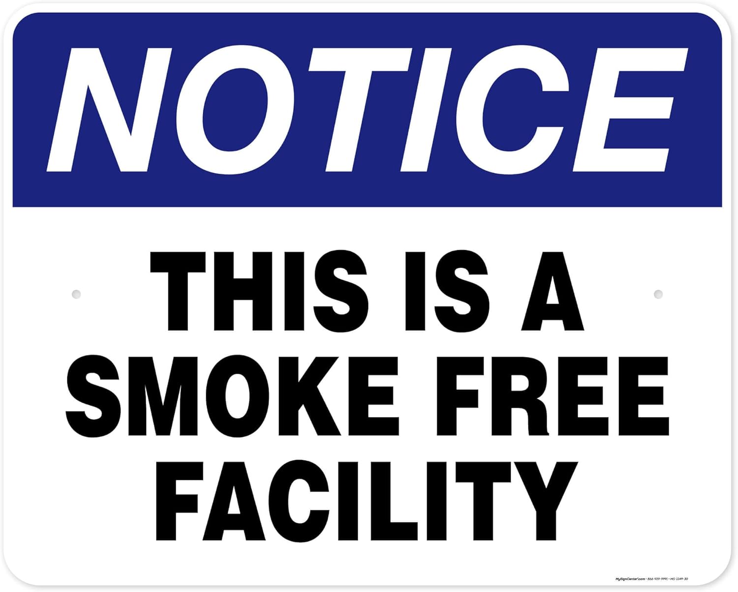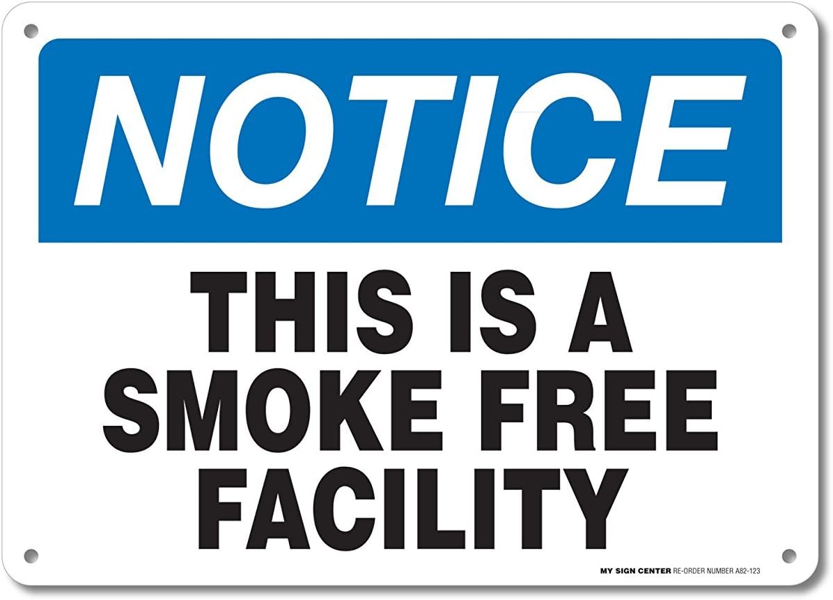 Notice This Is A Smoke Free Facility Sign, 18x24 Inches, 55 mil thick HDPE (high density polyethylene), Made in USA by My Sign Center