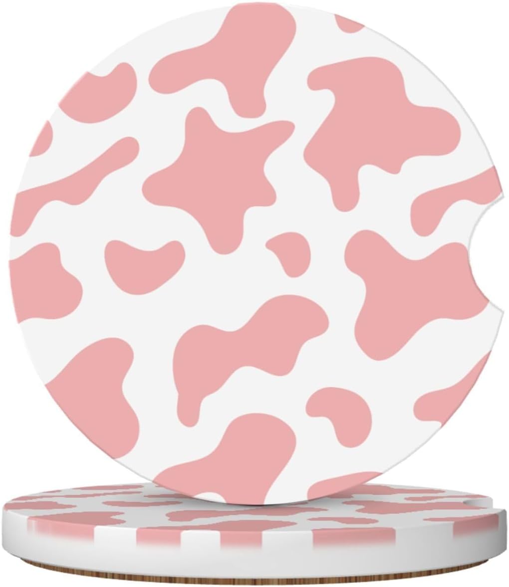 Pink Daisy Flower Car Coasters for Cup Holders,2 Pack Car Cup Holder Coasters for Car,Ceramic Absorbent Car Coaster with A Finger Notch and Cork Base,Car Interior Accessories for Women Men