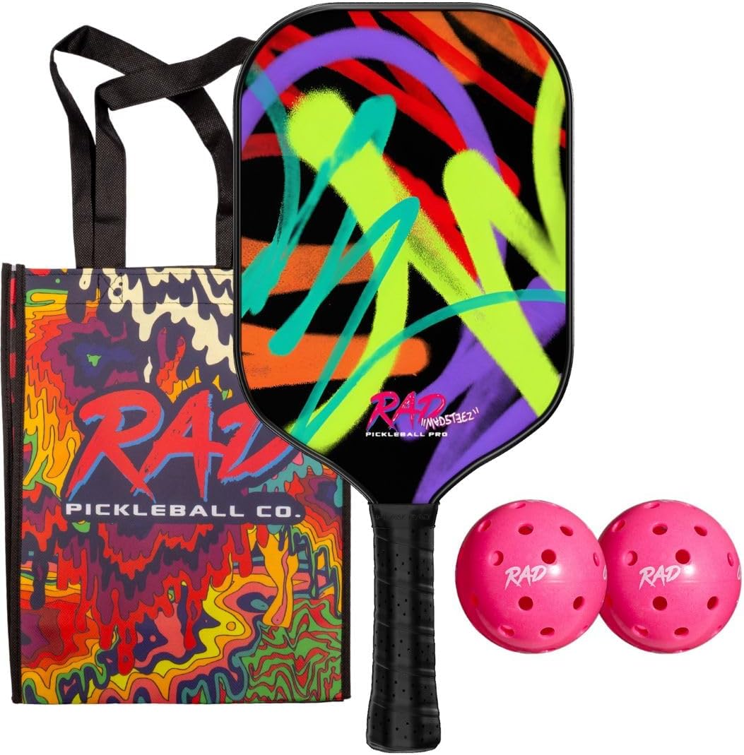 💥 Dominate the Court with the RAD Retro Pro Pickleball Paddle Set! 💥 Step up your pickleball game with the RAD Pro paddle set, built for speed, control, spin, and power. Whether you're training or playing competitively, this premium-quality pickleball paddle delivers unmatched performance. ✅ T700 Carbon Fiber Surface – Generates serious spin & power ✅ 16mm Polypropylene Honeycomb Core – Ensures ideal balance of precision & strength ✅ 360° Carbon Fiber Sidewalls – Boosts paddle durability ✅ Extended Comfort Grip – Perfect for finesse & strategic play ✅ USAPA Approved – Play like a pro in tournaments & official matches ✅ Includes Tote Bag + Indoor & Outdoor Pickleballs – All-in-one pickleball accessories set Whether you're upgrading your gear or searching for the best pickleball gifts, this set delivers performance and style for every player—from beginner to pro. 🎯 Ideal for fans of CRBN pickleball paddle, Friday pickleball paddle, or anyone seeking high-end carbon pickleball paddle technology.