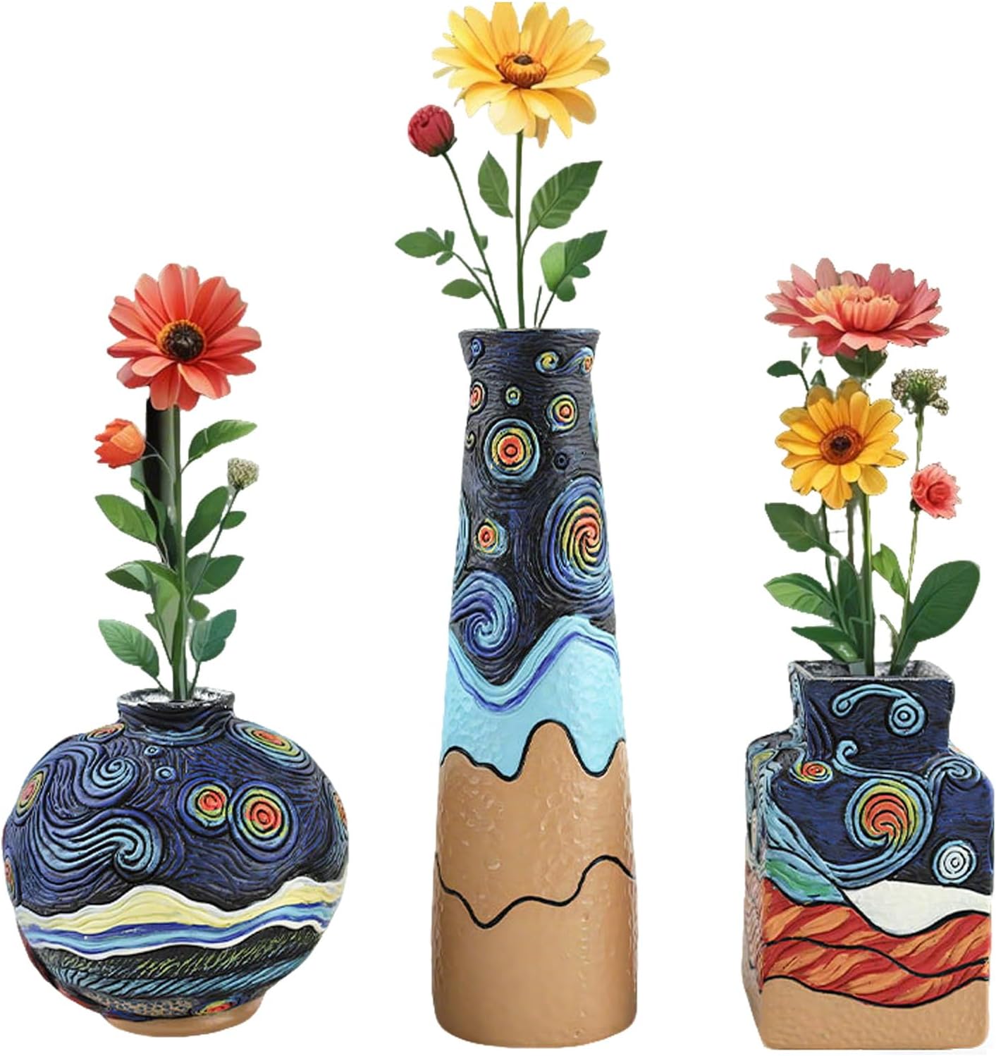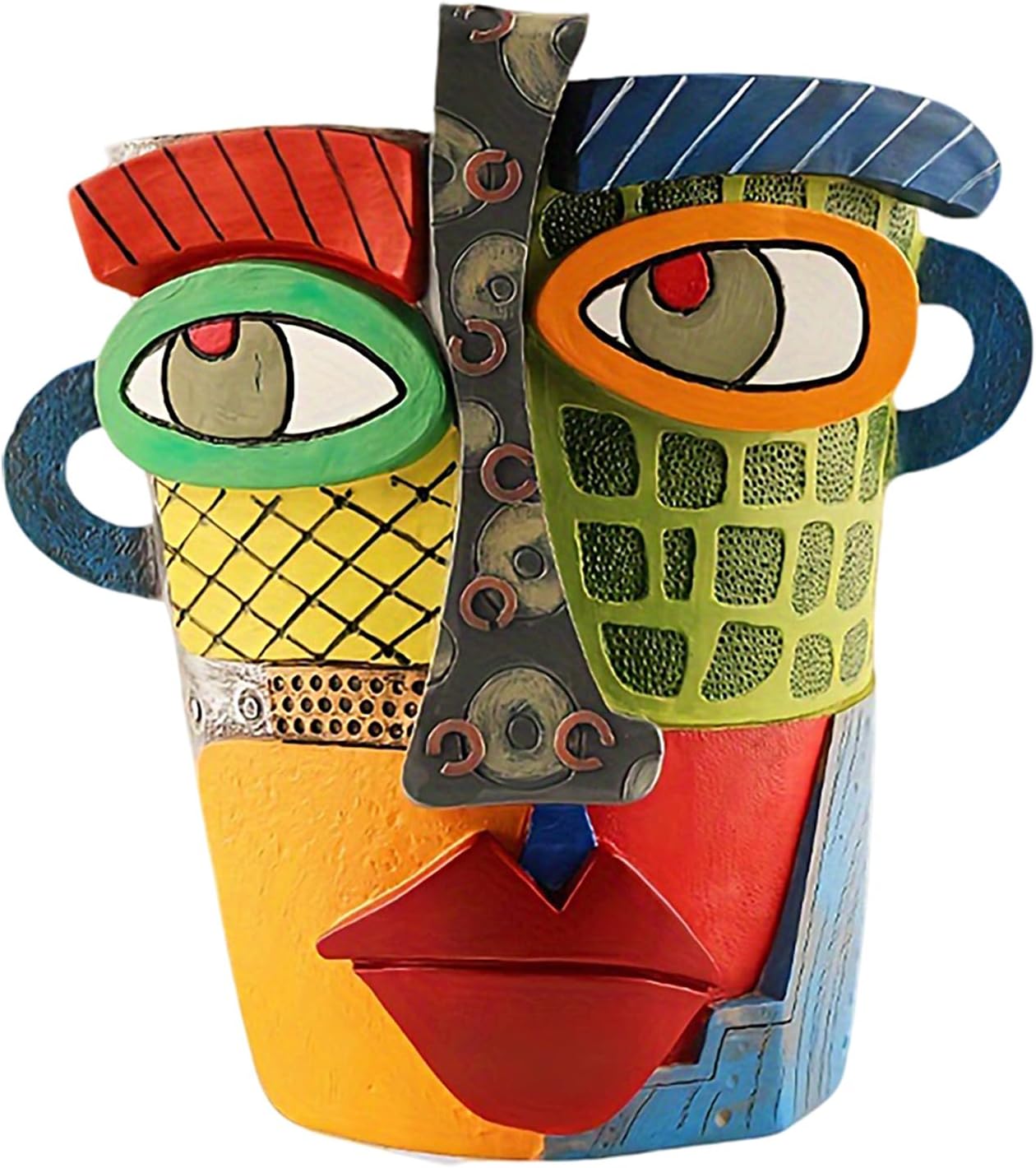 Product Specifications Material: Resin Craftsmanship: Handmade Product Dimensions: Abstract Multicolored Flower Pot (Antique Style): 7.1x5.9x7.2 inches, 1.47lb Abstract Multicolored Flower Pot (Regular Style): 7.2x7.1x5.9 inches, 1.47lb Weeping Abstract Flower Pot: 6.1x6.1x7.2 inches, 2.1lb Mayan Abstract Flower Pot: 6.1x6.1x7.2 inches, 2.1lb Starry Night Vase 3-Piece Set: Starry Sky Jar: 1.8x1.8x6.2 inches, 0.2lb Starry Sky Jar: 3.3x3.3x3.1 inches, 0.2lb Starry Sky Square Vase: 1.9x1.9x3.2 inches, 0.2lb Starry Sky Flower Pot: 5.9x5.9x6.8 inches, 1.3lb Suitable for gifting occasions: weddings, travel souvenirs, graduations, housewarmings, parties Suitable for holidays: Christmas, Father's Day, Mother's Day, Halloween, Easter This unique colorful art abstract resin flower pot brings a playful Picasso-inspired brutalist face design to your plant display. Crafted from durable resin material, this conversation-starting piece features vibrant abstract colors and bold facial features that transform ordinary greenery into a striking decorative statement. The versatile design suits both indoor and outdoor use, making it an ideal choice for adding whimsical character to any setting.