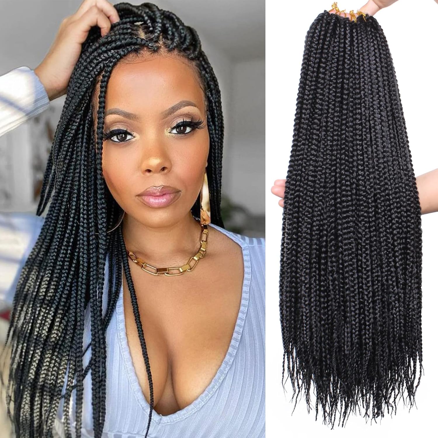 Material: Box braids crochet hair, crochet hair made with low temperature synthetic fibers, is very close to real human hair, natural luster, light weight, comfortable and soft. Features:Goddess box braids crochet hair is 100% handmade, easy to install, because they have been pre-looped in advance, especially for beginners, it can save more time to make hairstyles. Packing:The crochet goddess box braid is 30 inches long, 18 strands/pack, 8 packets/batch, 144 strands/batch, generally enough for a complete head, also with a crochet needle and random number rubber bands. Use occasions: The braids will suit any occasion,Daily use, Party, Travel, Wedding, Dating, Performance etc. suitable for for Black Women, Lady, Girl, Generally used by all age. After-sales guarantee:If you have any questions before or after receiving the package, you can contact us for free, we will try our best to help you solve it and give you a satisfactory answer. Crochet box braids can be the perfect option to project your personal style.If you’re looking for a new super long hairstyle.This Super Soft Box Braids Crochet Hair would you a best choice for you.Crochet box braids are relatively low maintenance and are a great style for your every day look.